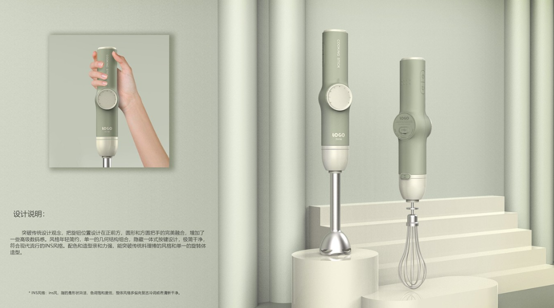 这款多功能料理棒可以满足绞肉机,料理机,打蛋器,果蔬搅拌器等多种功能。整机设计简约风格,与厨房环境相融合,是一款值得拥有的厨房电器产品。