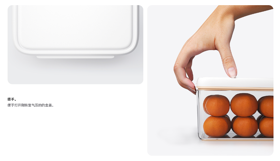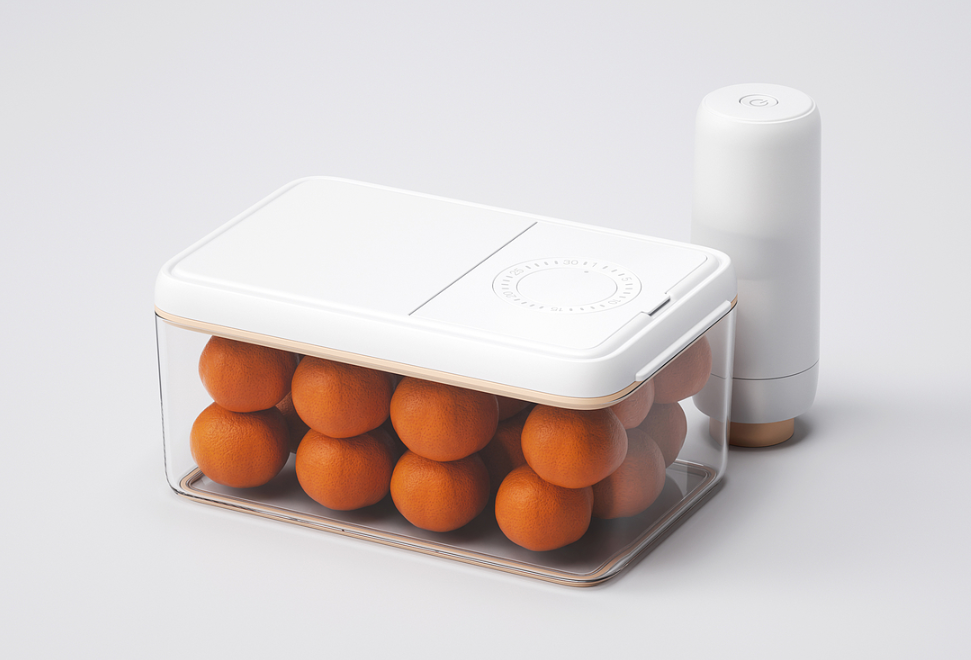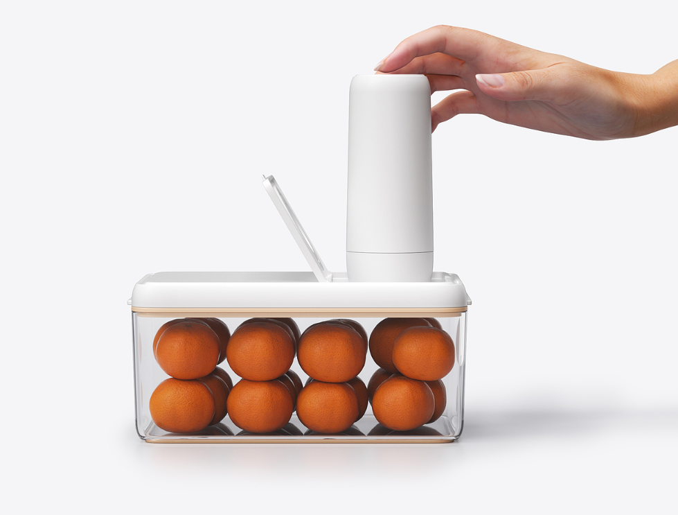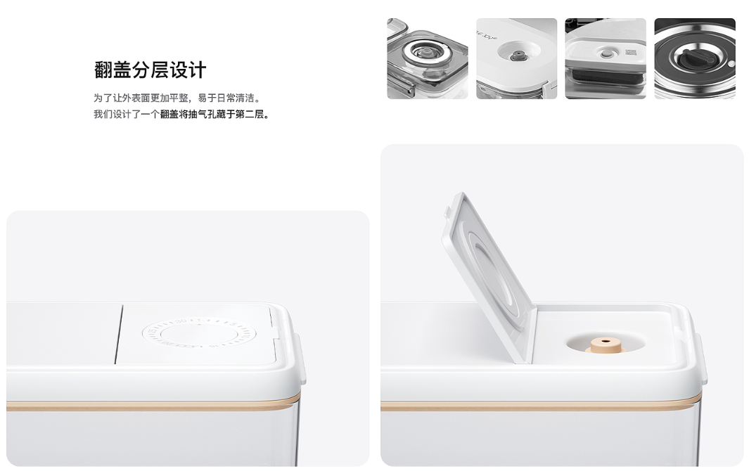 FreeCube旨在于提供更健康的食物保鲜。将食物放置于盒内,通过电动抽真空泵轻松将盒内的空气排出,另外,一些细节设计也让其更加实用。
