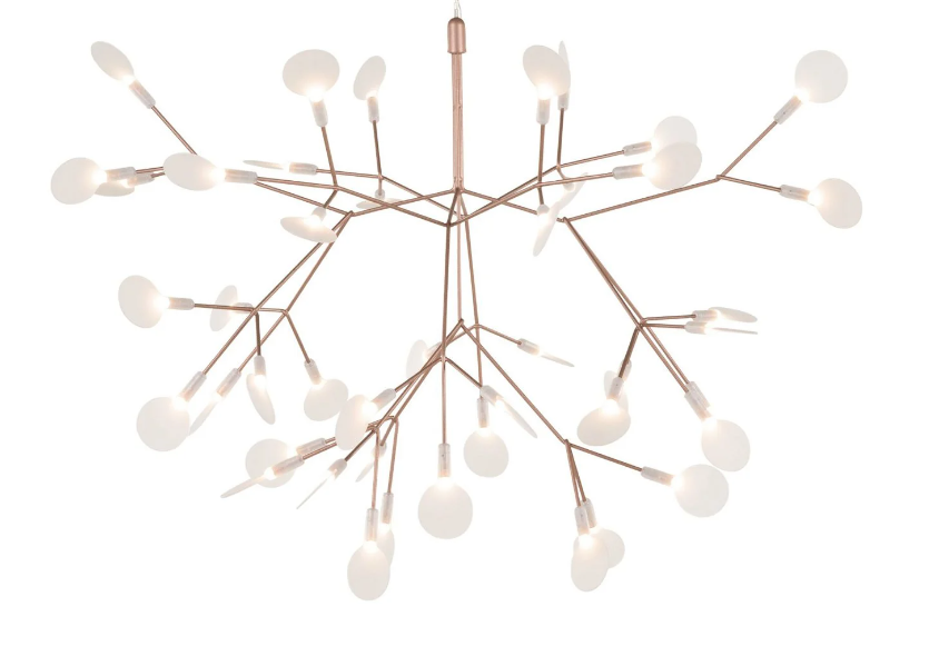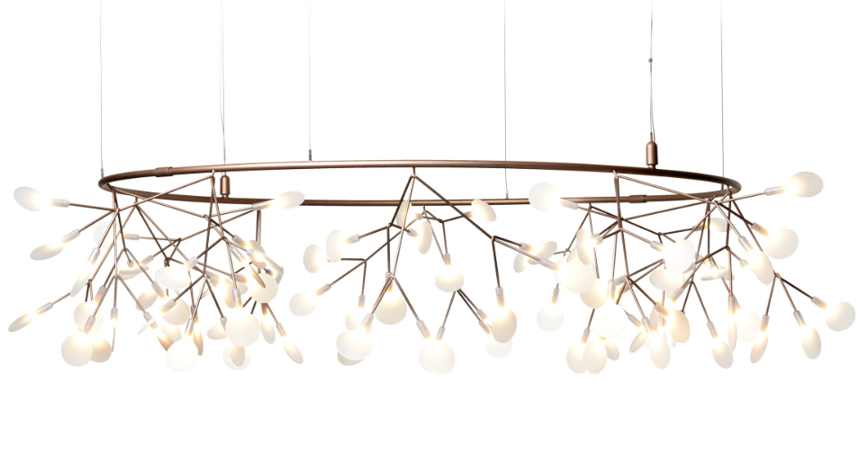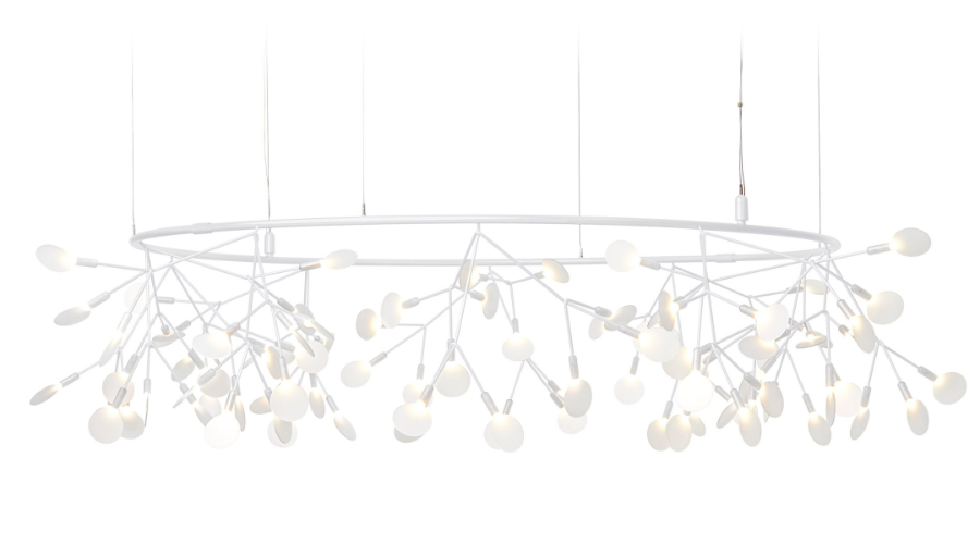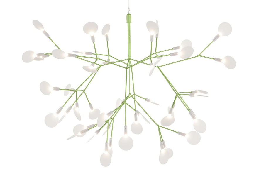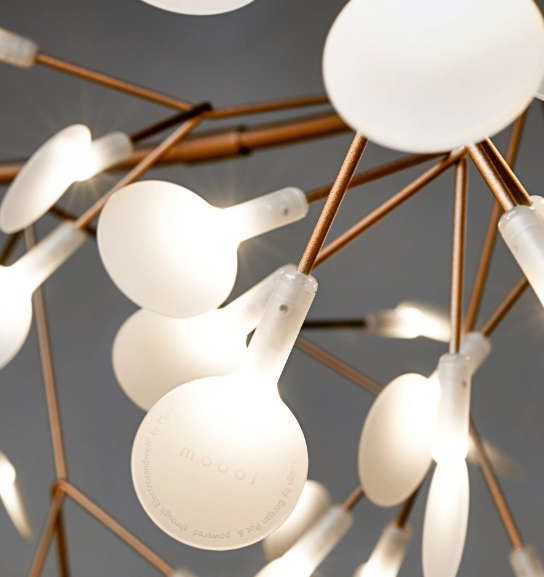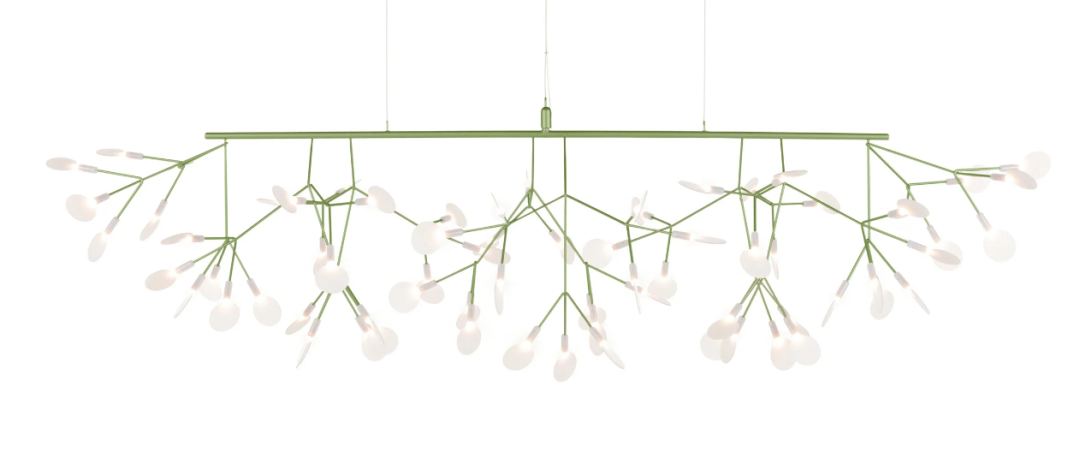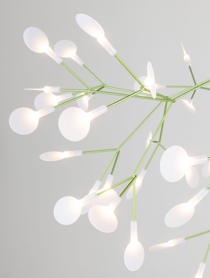 Heracleum 灯以一种草本植物命名,包括一个垂直、线性或圆形的框架,支撑着细长的树枝。这些分支包含导电层,为半透明叶形标签内的 LED 供电。