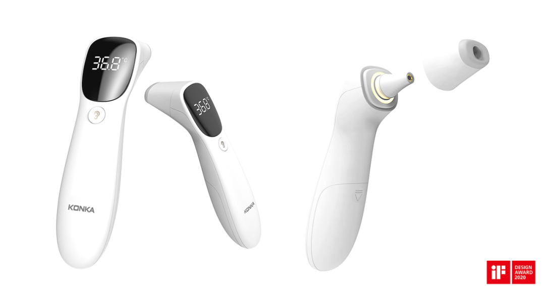 康佳额耳电子体温计荣获2020德国iF设计大奖,设计灵感来源于蜻蜓造型,充满童真童视觉感,通过设计使体温计更加贴合人的手持感,更轻巧、舒适。