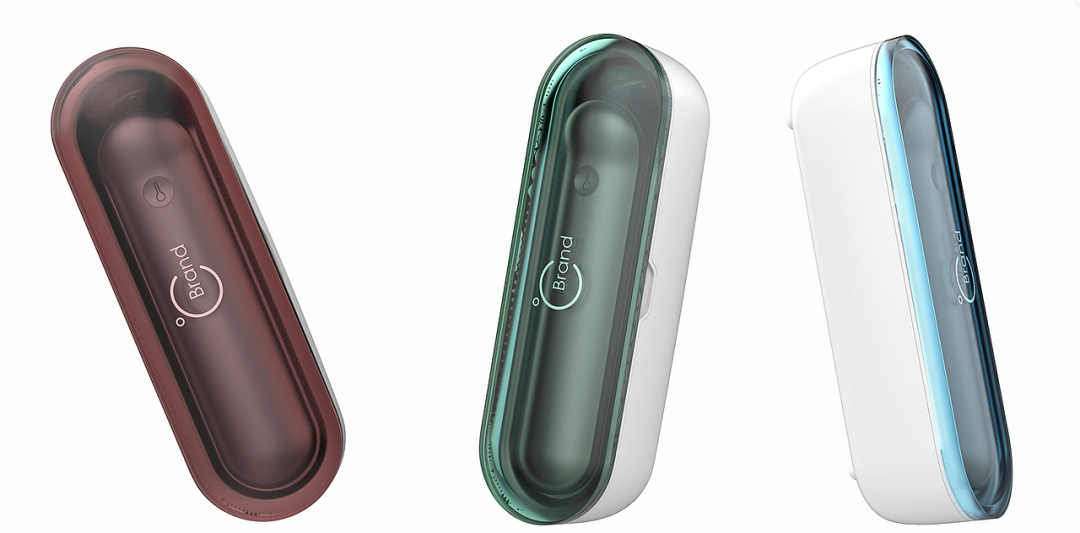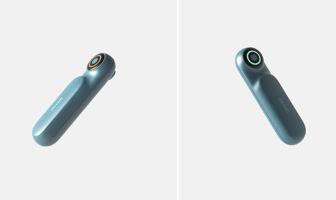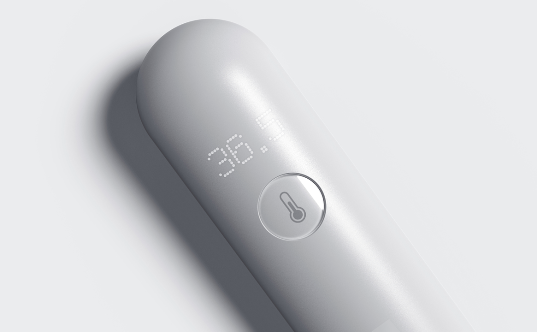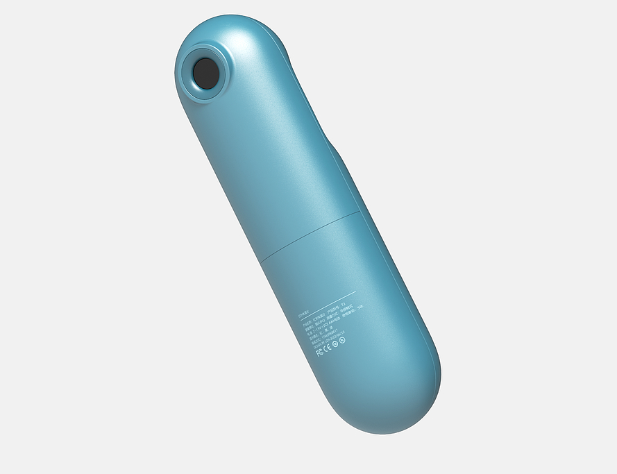 整个体温枪造型采用一体式“悬浮”跑道圆设计,简洁且有层次感,澄澈简雅剔透晶莹的屏幕,结合了人体工学的背部曲线设计。