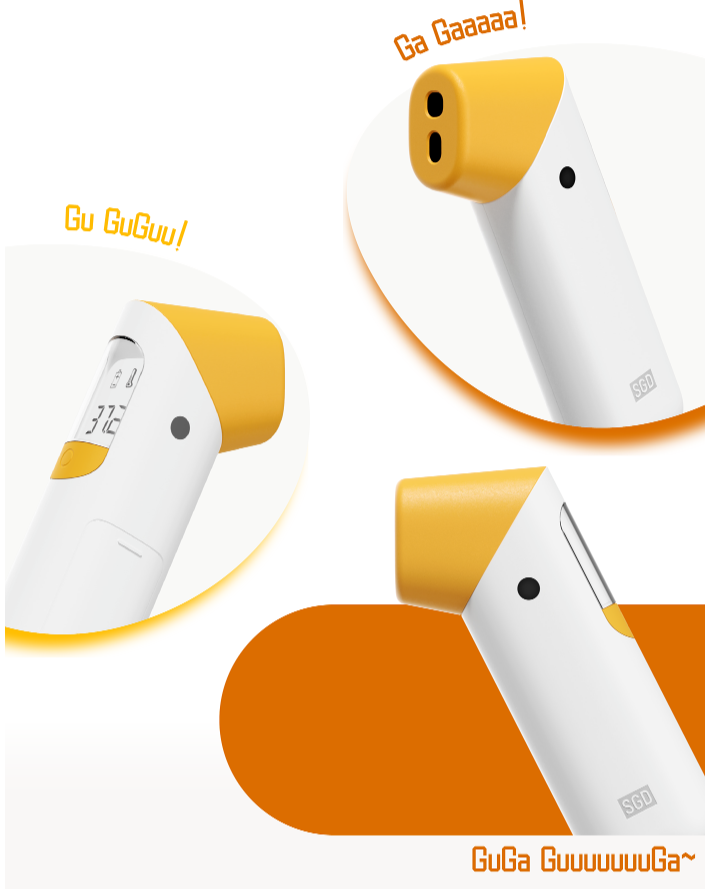 设计师用额头与鹅头的比喻让人觉得有趣,鲜明的亮黄色与白色壳体的搭配更让人觉得温和和童趣,仿佛让整个测温过程都明亮了起来。