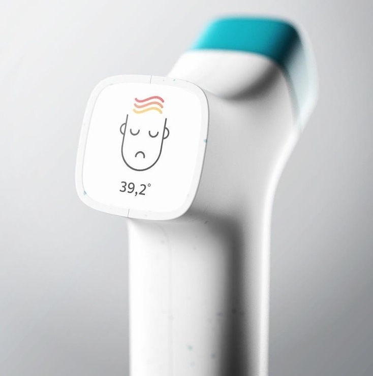 这款USB充电式温度计接触额头的表面是可拆卸的硅胶帽,用户可以将它们互换以适合不同的人使用,并使设备消毒变得更加容易。扫描和结果用面部图标描绘,从而增加了产品的趣味性,这在其前代产品中是未曾见过的。干净,简洁的设计使温度计的视线不会对眼睛造成疼痛。