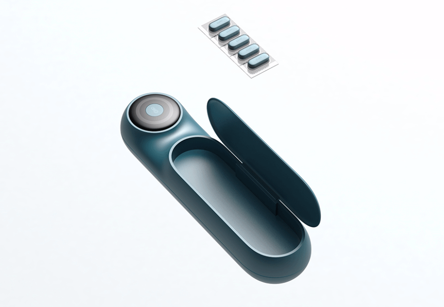 这一款家用额温枪设计将体温监测与药盒相结合,在非常时期能以配备的药物对病情进行治疗又或者是暂时性的缓解。