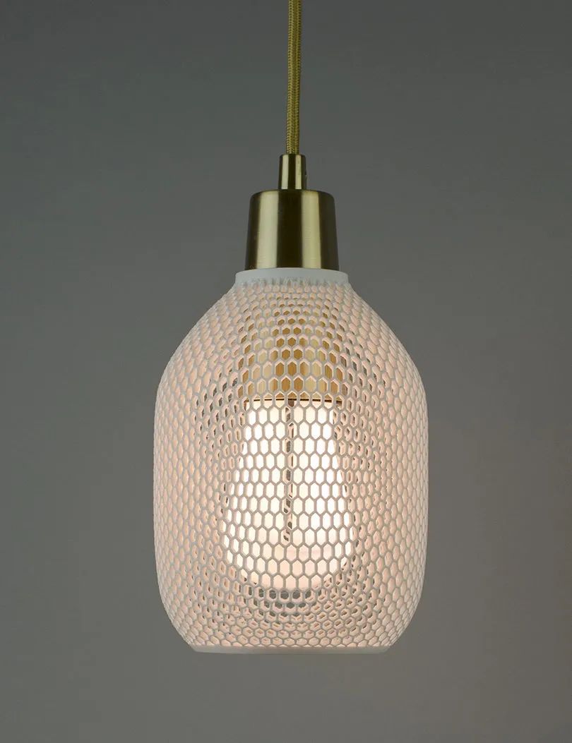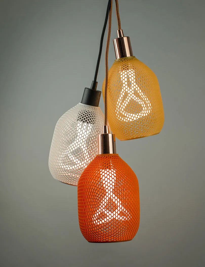 Plumen 与设计师卢克·迪林合作,专门为他们独特的灯泡打造了一款定制色调。Hive是一种生物形态,可生物降解的3D打印色调,灵感来自蜂窝的自然结构。遮阳板用于构架灯泡,使它们发光。