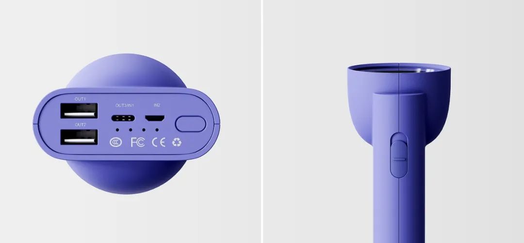当人们旅游或者露营的时候 ,往往需要带上移动电源和手电筒,根据这一场景 , 我们设计了这款创新的手持多功能设备。