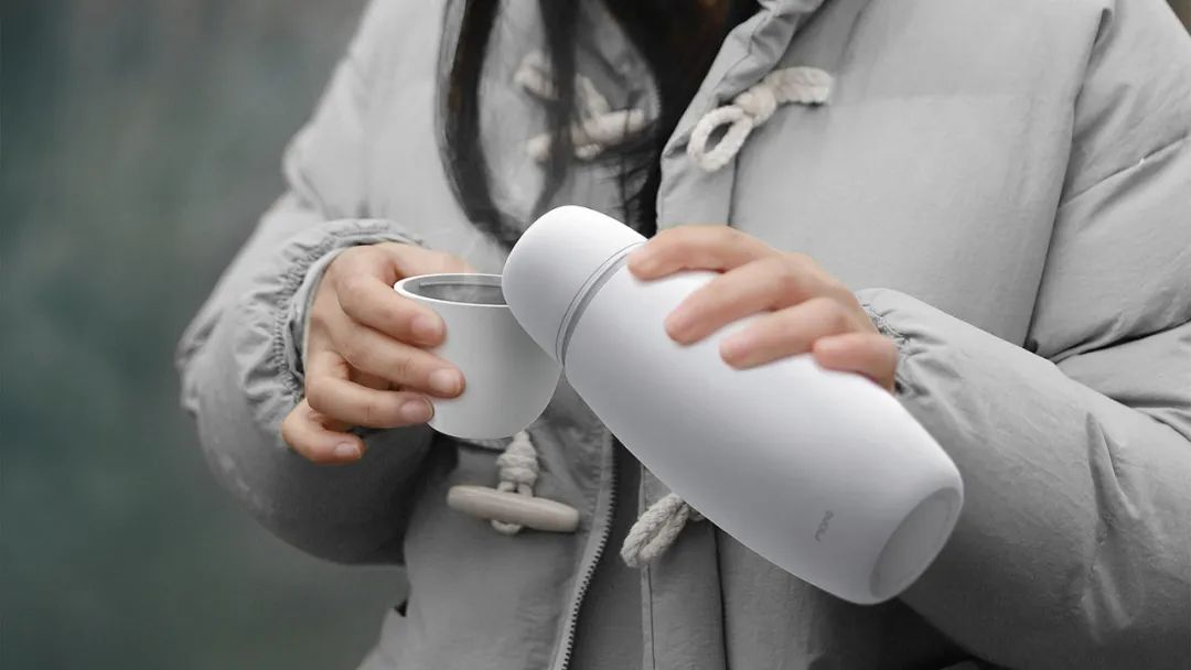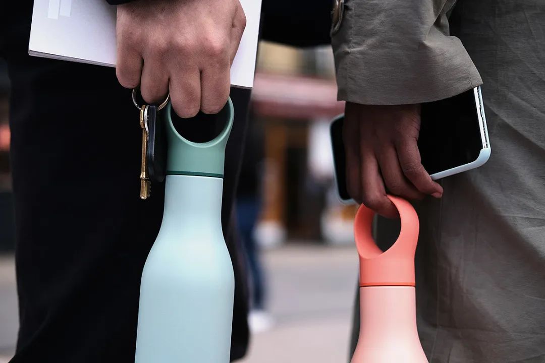 斯维尔这款杯子,在杯盖上融入了半隐藏式提绳,拎取时提供饱满柔软的手感。