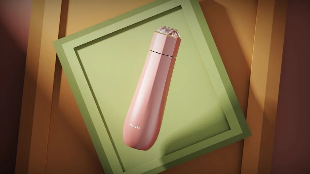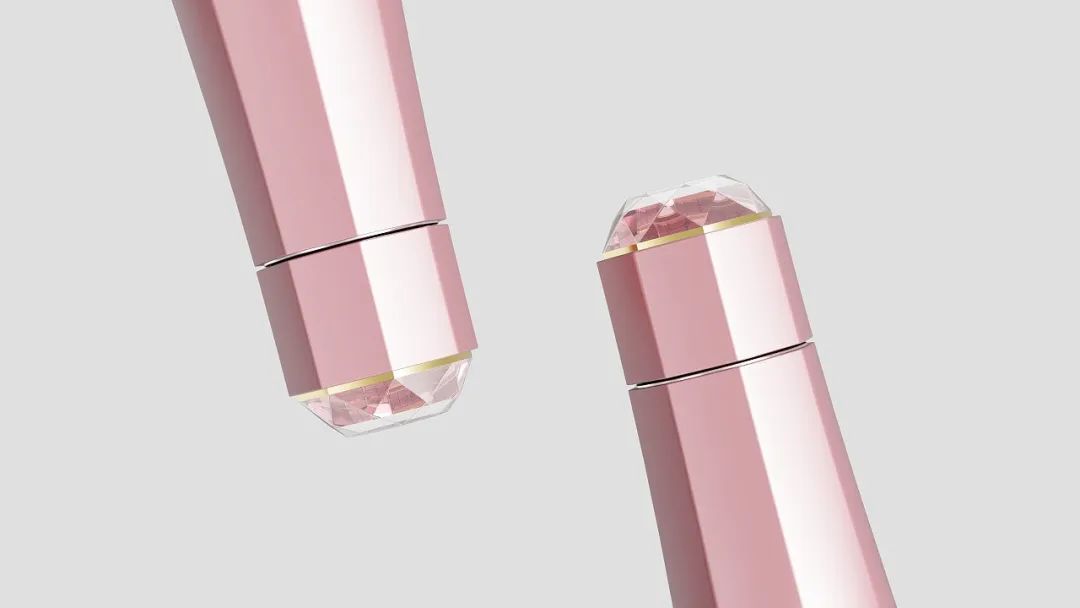 造型模拟液体摇晃的香水瓶,瓶身沿着钻石形态向下延伸直至最后圆润收尾,整体细长也比较适合女性手握。