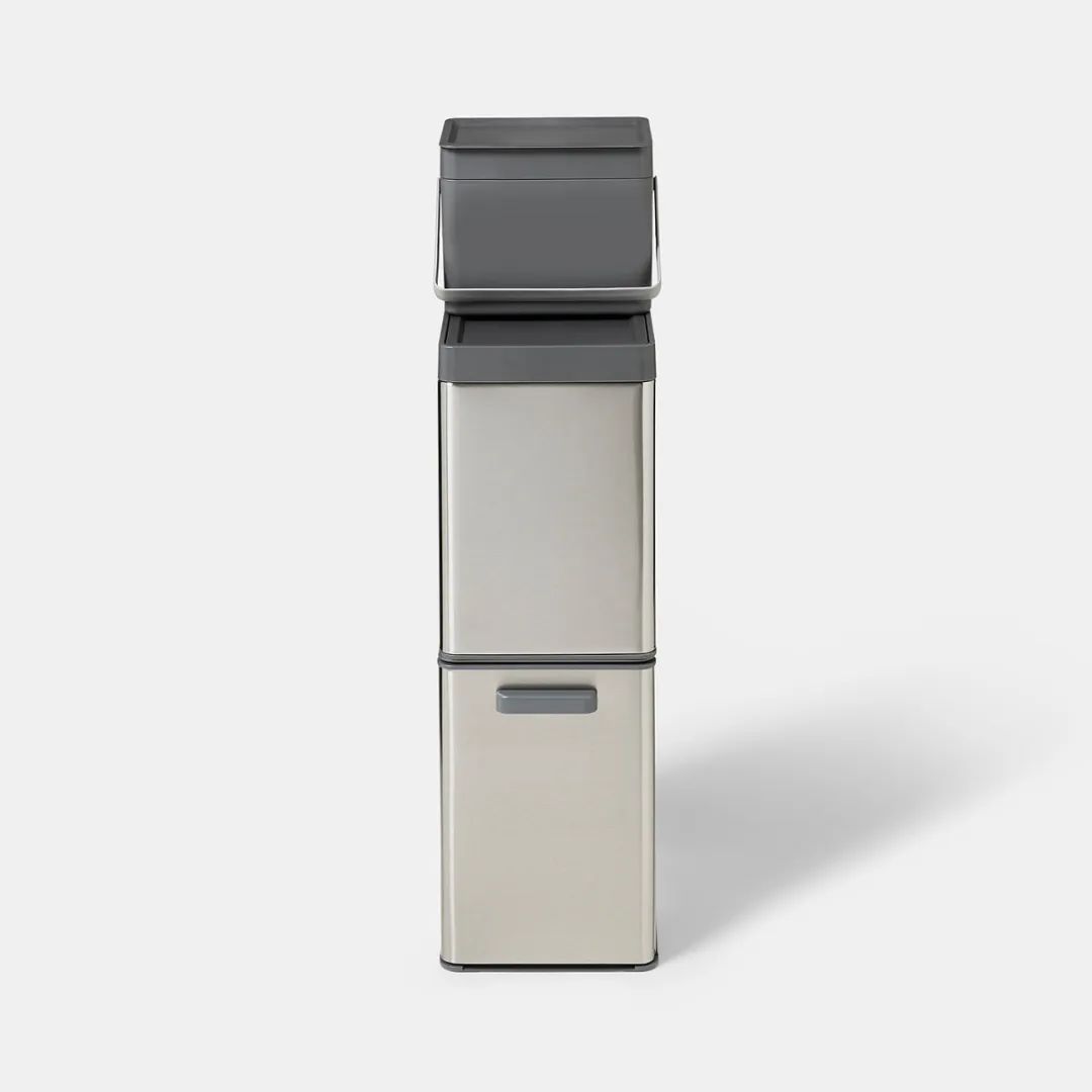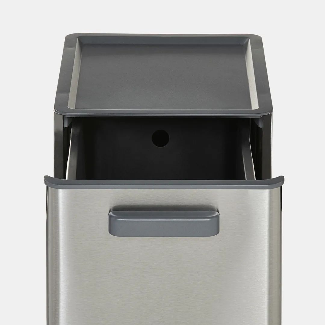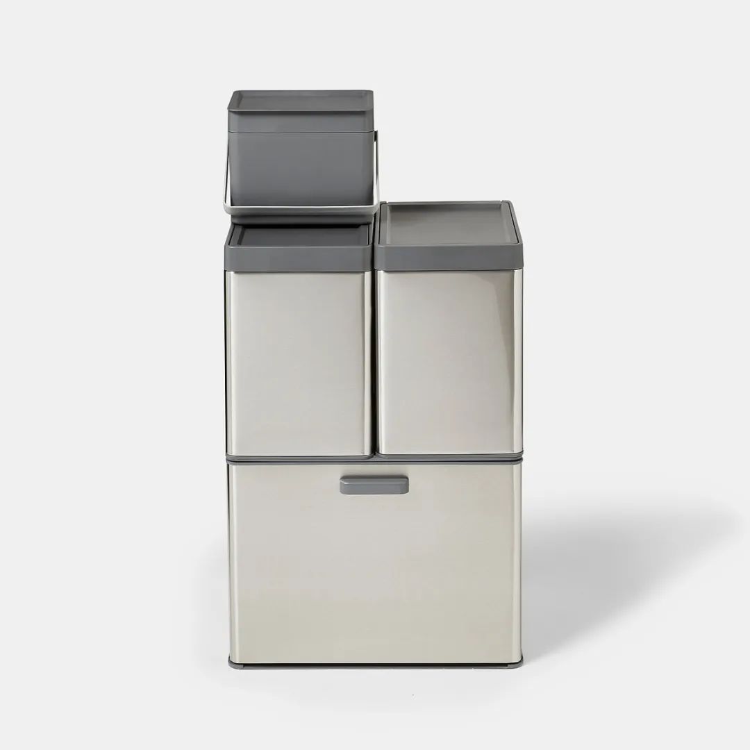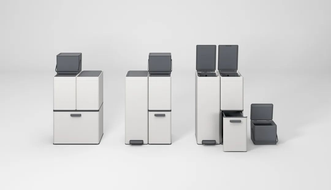每个垃圾桶均由不锈钢制成,外观简洁现代,同时还具有抗冲击性。
