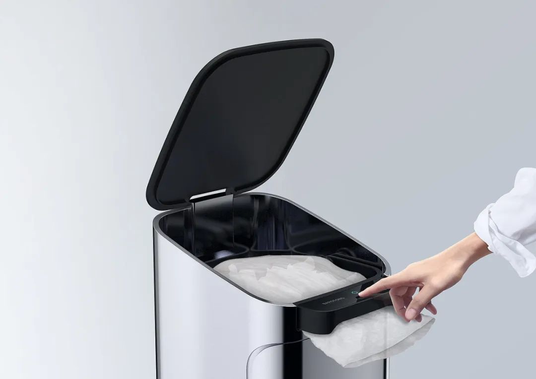 这是一款可以阻隔异味的垃圾桶。