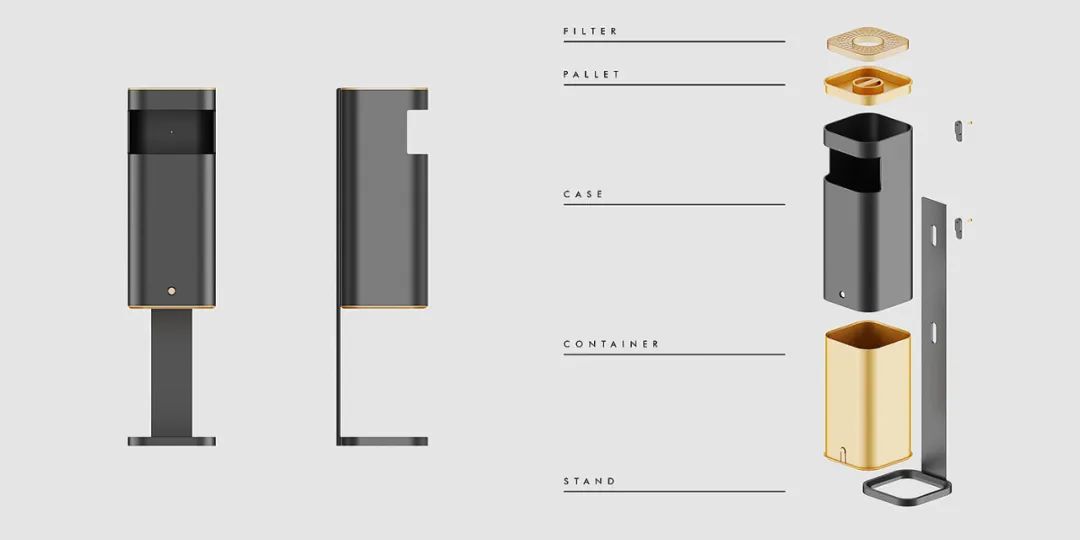 采用圆滑优美的曲线,没有棱角而柔和的特征,搭配简单方便投递的垃圾投入口。除了追求美的视觉效果,更重视「集散地」的构想,省略一切多余的装饰。