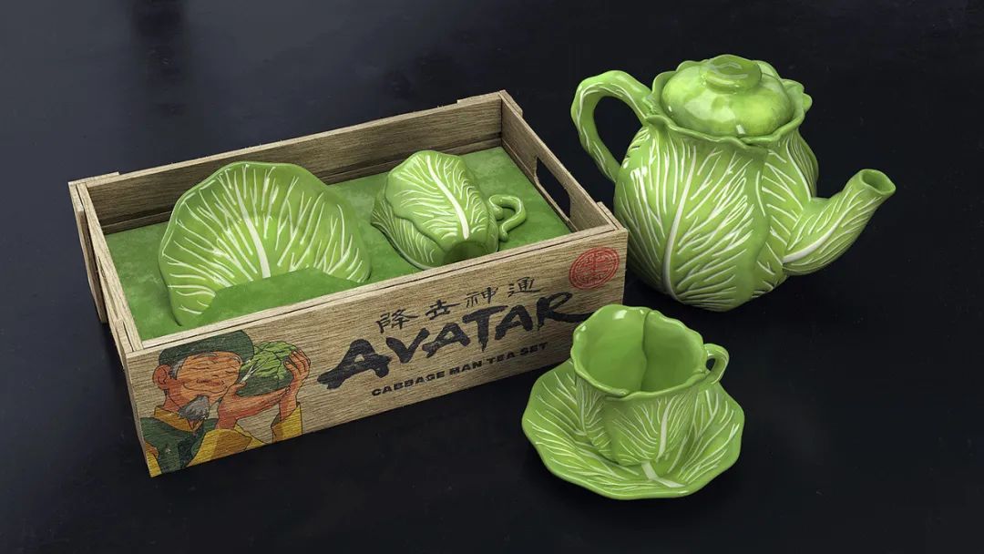 这是与Nickelodeon合作开发的一套茶具,该茶具基于《Avatar》最后的气宗节目中的一个非常特殊的角色:卷心菜人。看起来就像卷心菜一样,非常可爱。