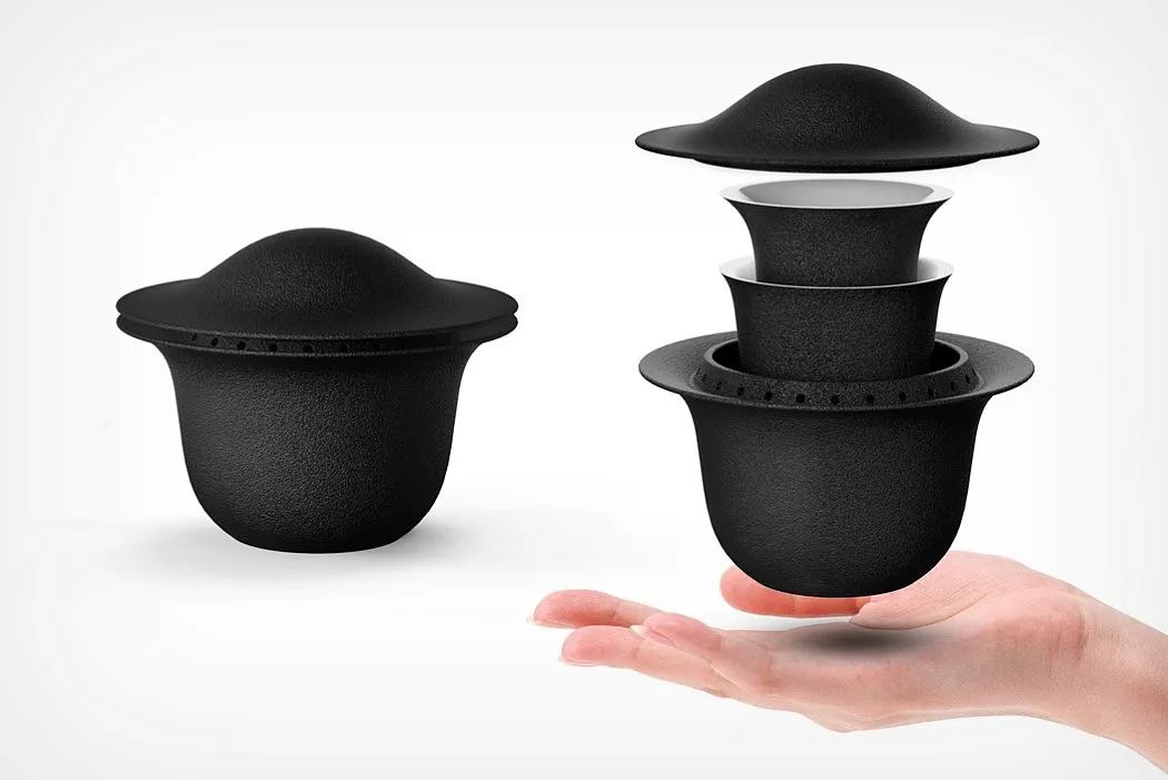 这款口袋茶具不同于标准的茶壶壶身、壶嘴和壶柄,这款口袋茶具在保持功能完整的同时设计得足够小,可以随身携带。
