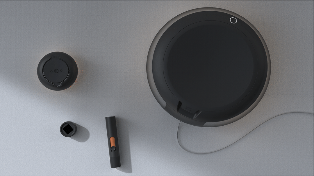 这款产品的设计灵感来自于 MagSafe 的 iPhone 无线充电器概念设计,它是一种可以固定在用户想要的位置上使用的产品,顶部看起来是深灰色,是一种 1.5 毫米厚的薄半透明塑料材料。
