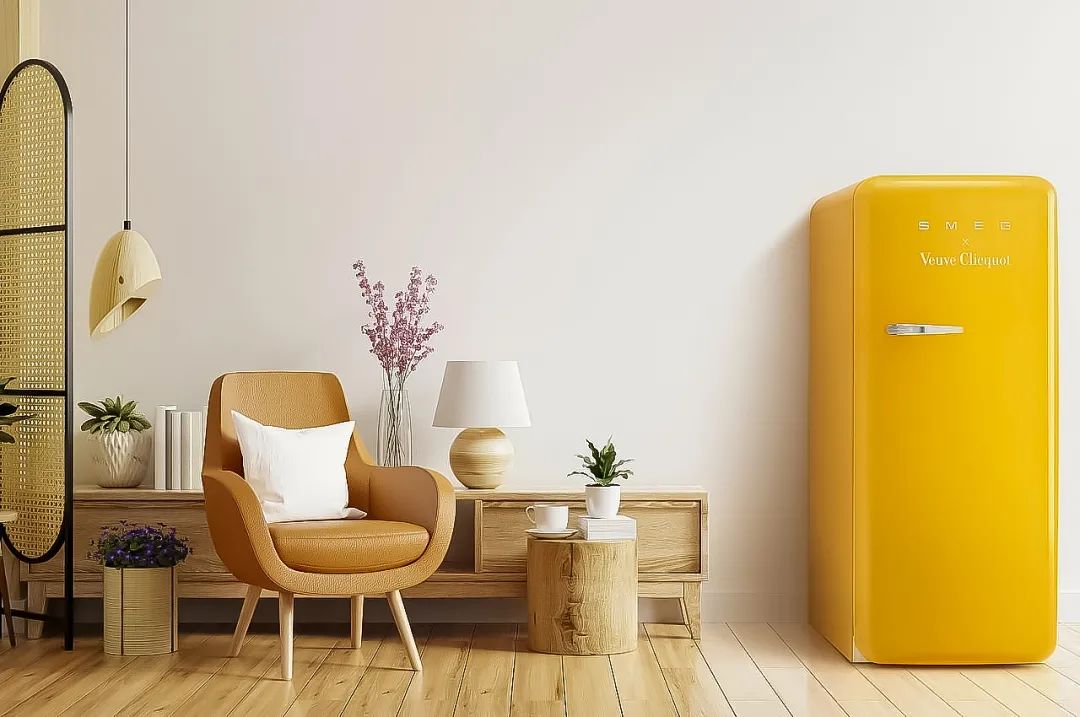 这款产品是Veuve Clicquot与意大利家电制造商Smeg合作,推出的一款特别版的50年代风格冰箱。