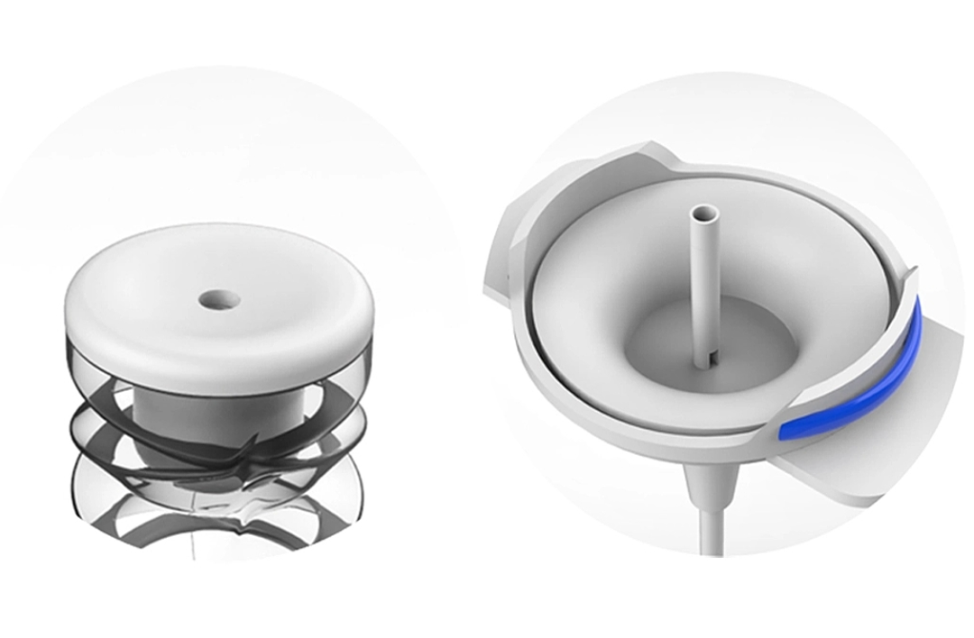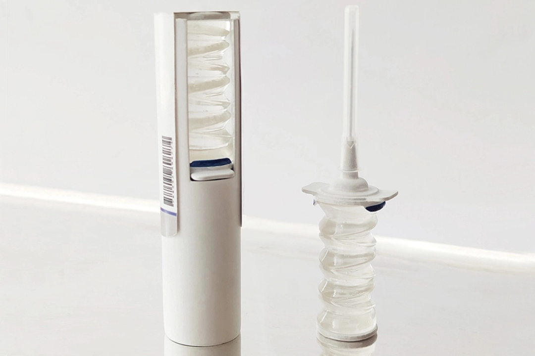 Helix的水晶硅胶结构能够携带疫苗液体,一旦折叠就可以清空,药物可以通过位于针头刚性柱塞上方的真空加载入口注入螺旋。