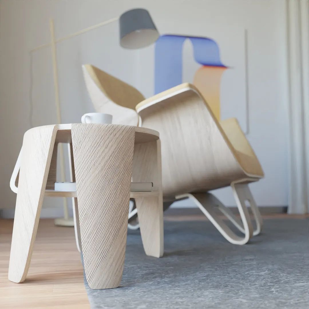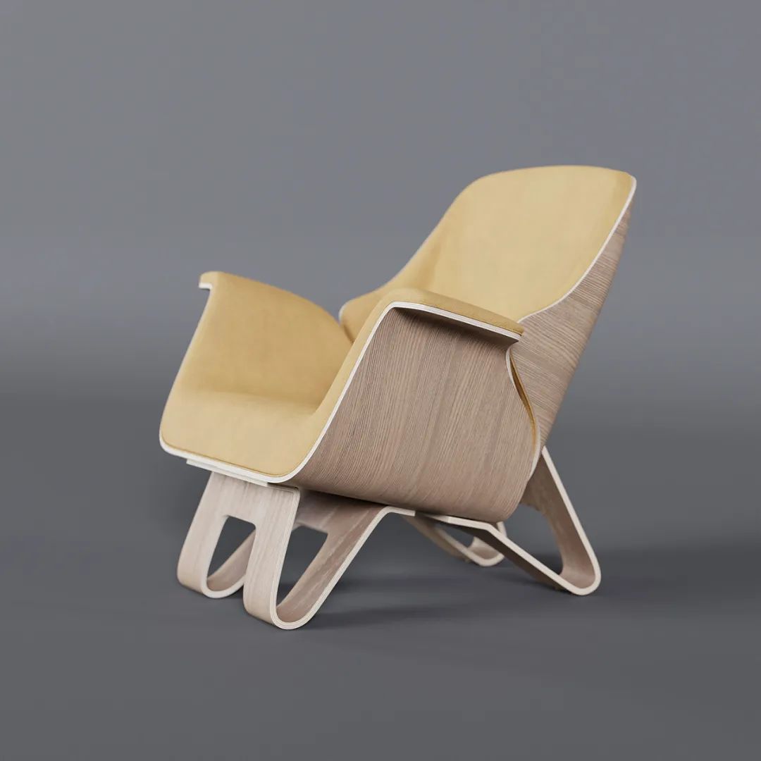 这是一款为了探索胶合板弯曲和有机形式而设计的椅子。