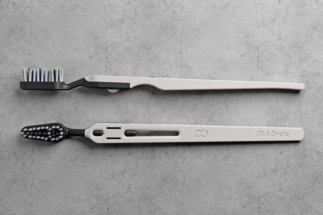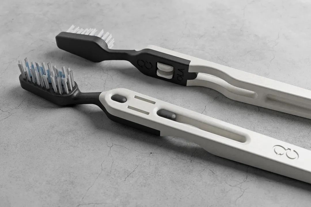 另一端包括梳子和刷子,通过柄内的孔夹在一起,当刷子和梳子坏掉的时候,可以被拆下并处理掉,手柄被保留了下来,减少了86%的塑料消耗。