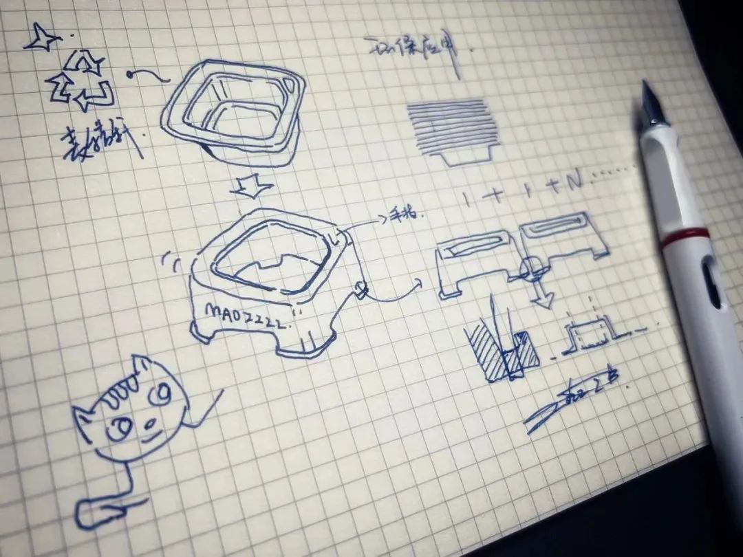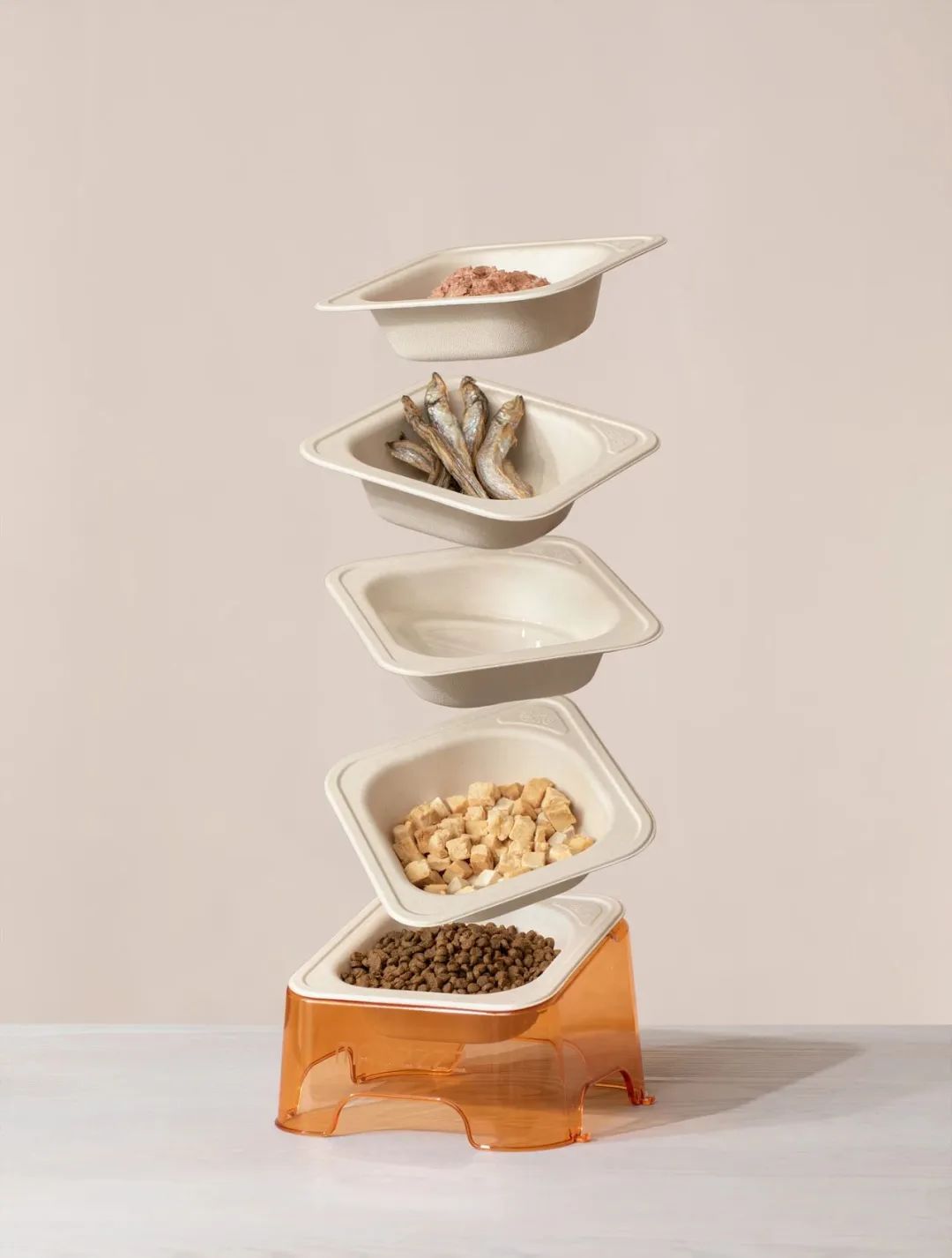 这是一款一次性宠物碗设计,主要以宠物寄养,宠物医院,频繁使用塑料碗反复消毒情况为背景进行设计思维展开。