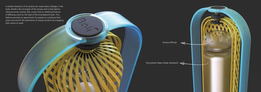 所有这些技术都是通过一个由中心轴和外部框架集成的内部机构来实现的。它还通过灯泡的热量散发气味,通过丰富感官体验为人们提供额外的功能。