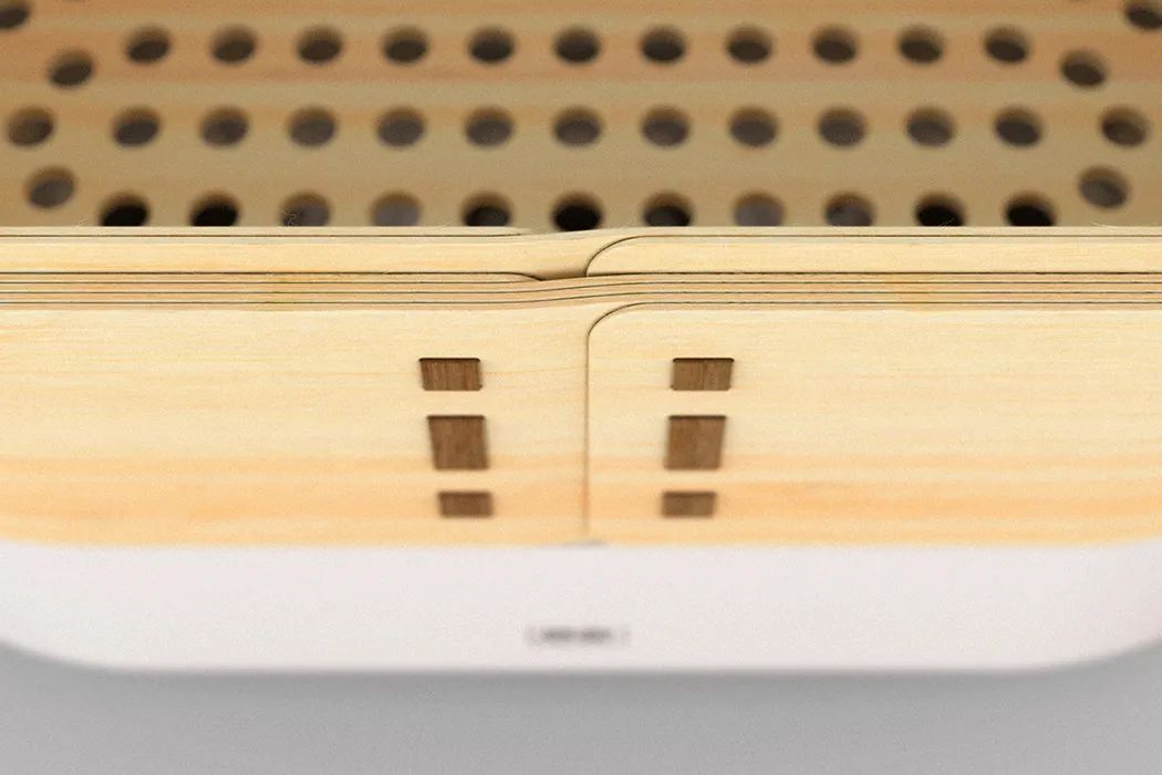 这款产品将现代美学运用到传统的竹制工艺中。天然皮革由不同厚度和颜色的竹子编织而成,赋予其现代的外观,并确保其强度和耐久性。