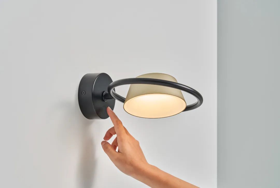 它配备了用于可以切换台灯和壁灯的触摸调光开关。大多数光线朝一个方向照射,而空心阴影允许部分光线扩散到另一边,并降低亮度的对比度。
