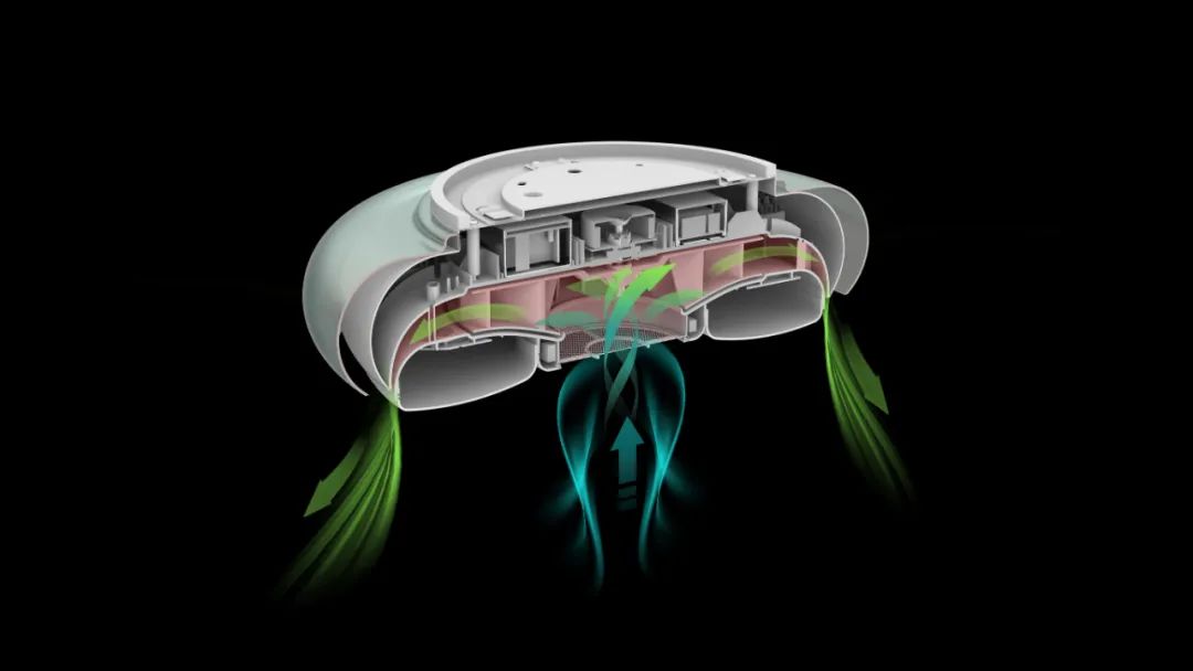 Aura是一款功能强大、智能的净化吸顶灯,形状光滑柔软,外观丰富多彩。光环可以作为灯光照明,但也配备了风扇和负离子发射器。