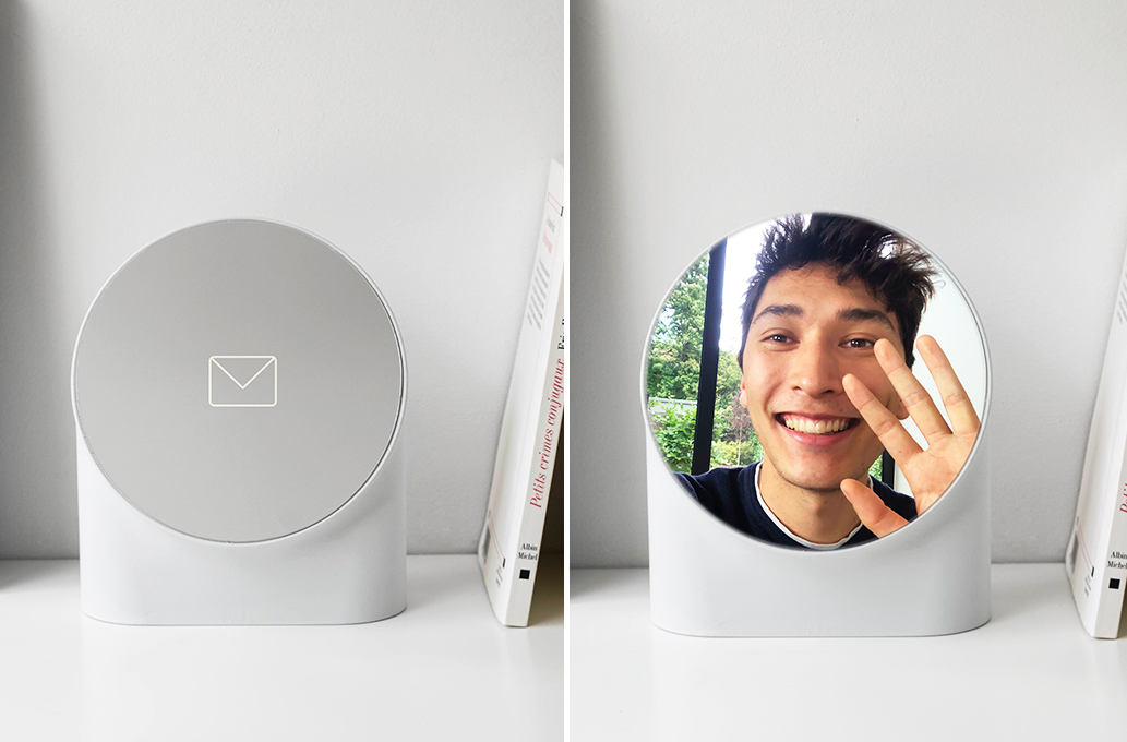 这款产品平时是一个自动更新的相框,添加了应用程序,可以视频聊天,加强家庭成员之间的联系。