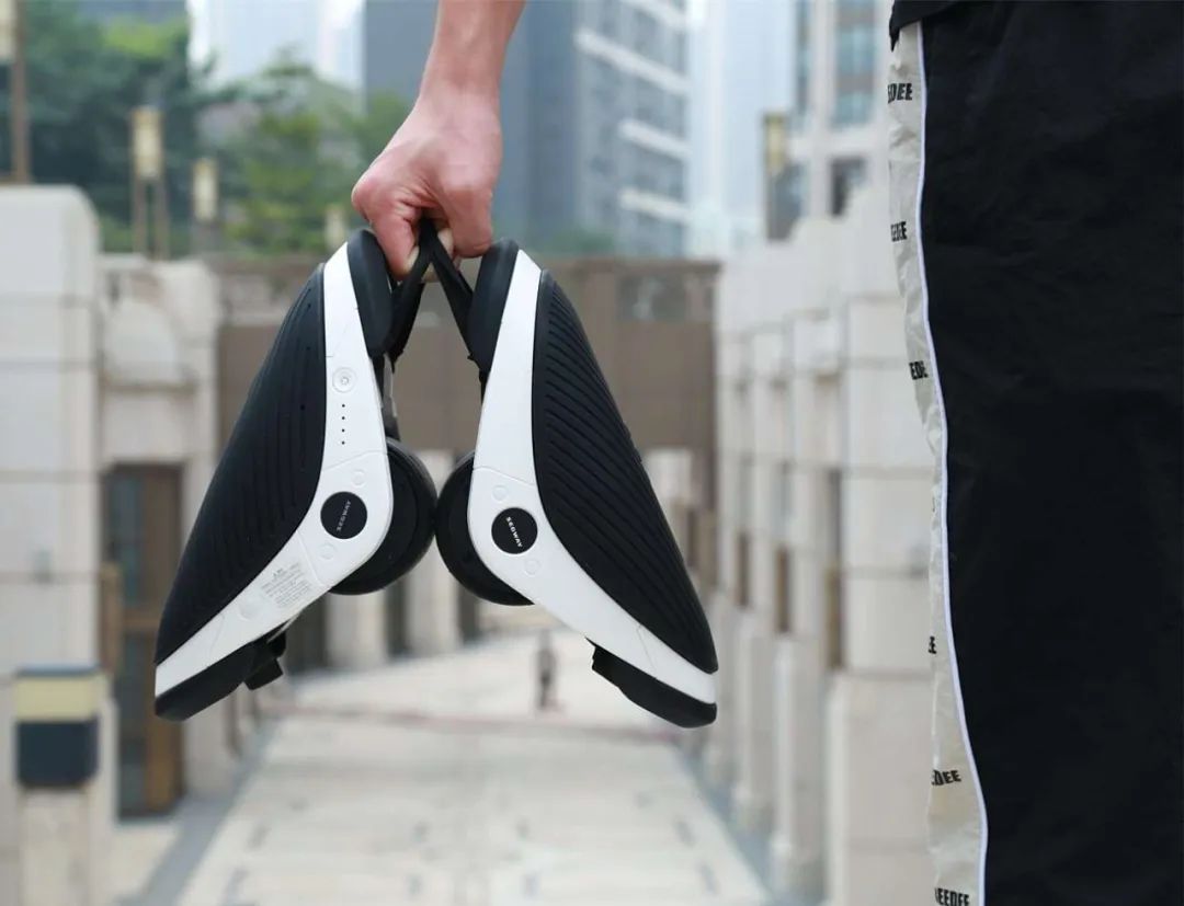 这是一种全新的分体式平衡车,它既集成了旱冰鞋的实用性,又保持了平衡车的科技感。