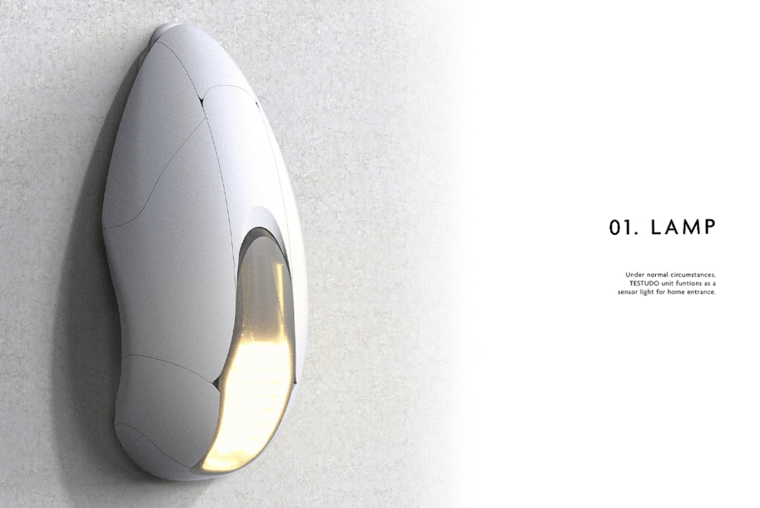 当地震来袭时,Testudo将在墙上提供照明,用户很容易就能找到并采用它的安全措施。
