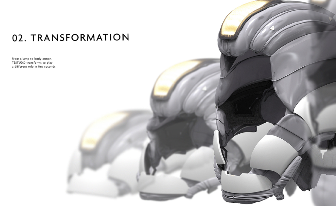 这款多功能防护设备旨在为地震期间坠落的碎片提供可穿戴防护装置,灵感来自古罗马的军事战术。