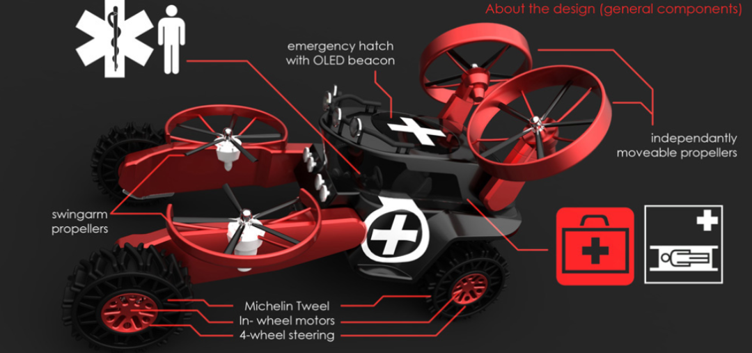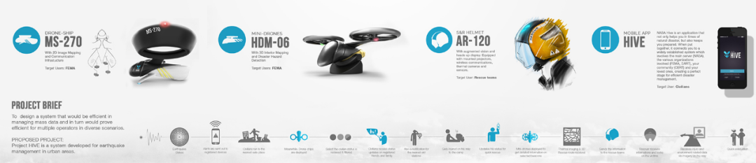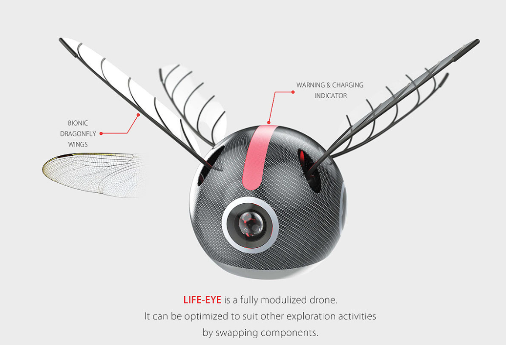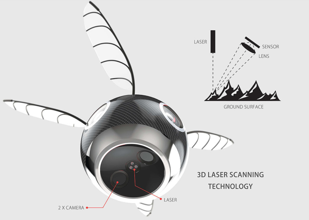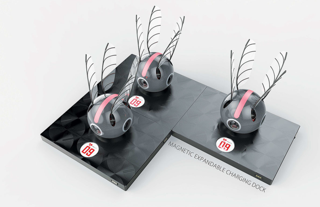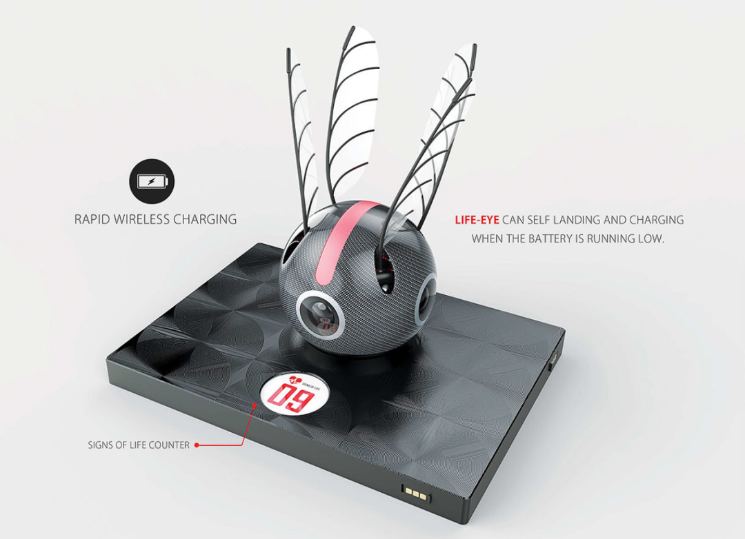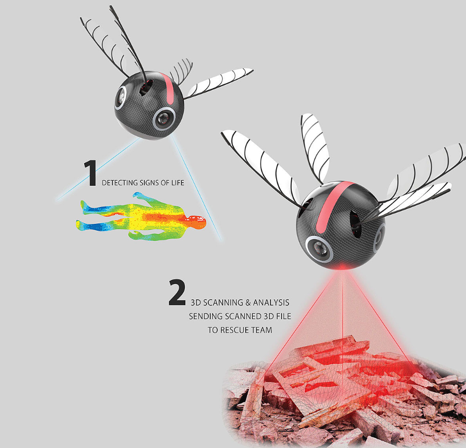 产品采用昆虫的仿生形态设计,主要实行震后的生命勘测功能,为及时发现幸存者发挥作用。