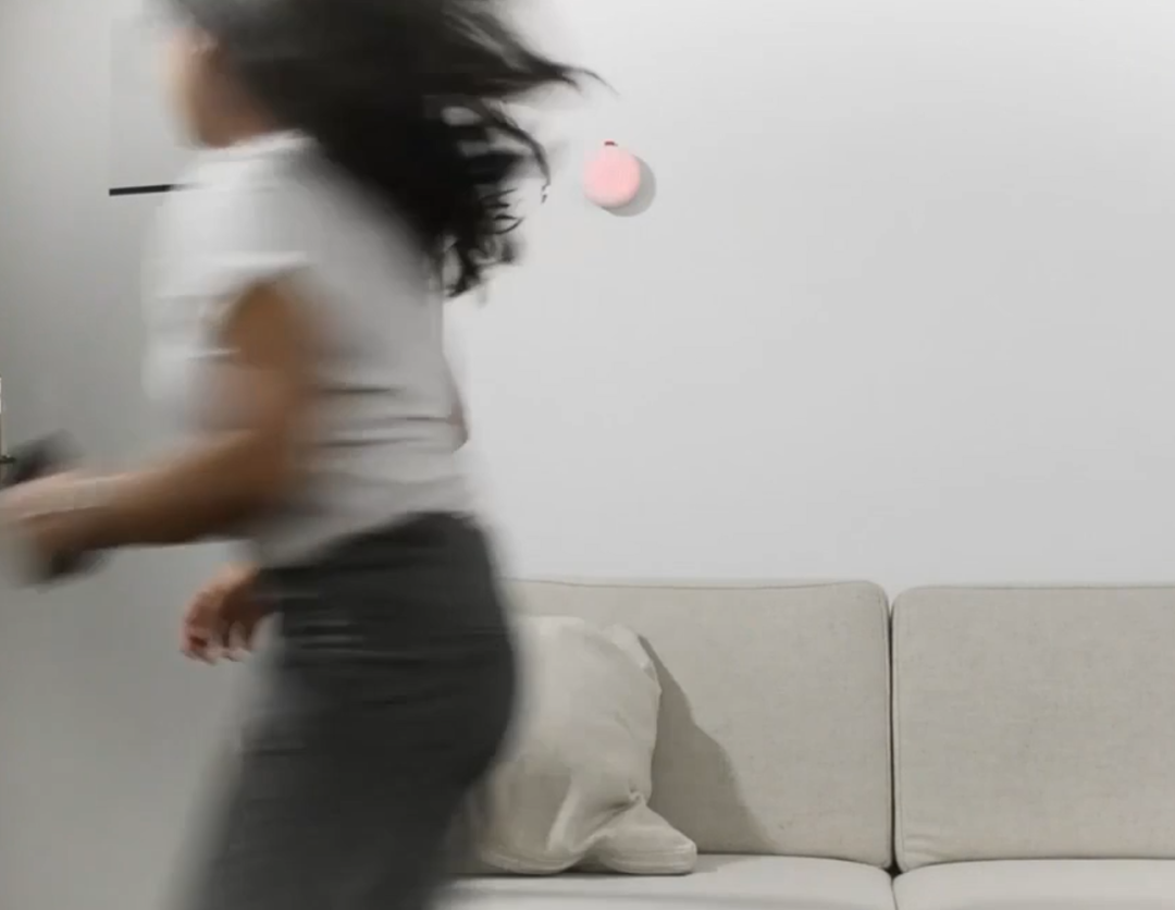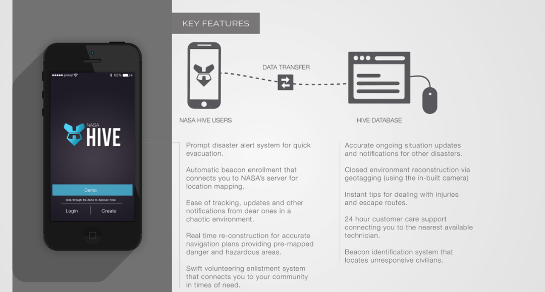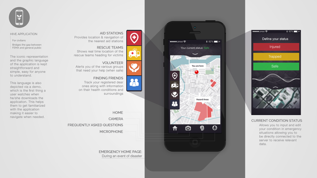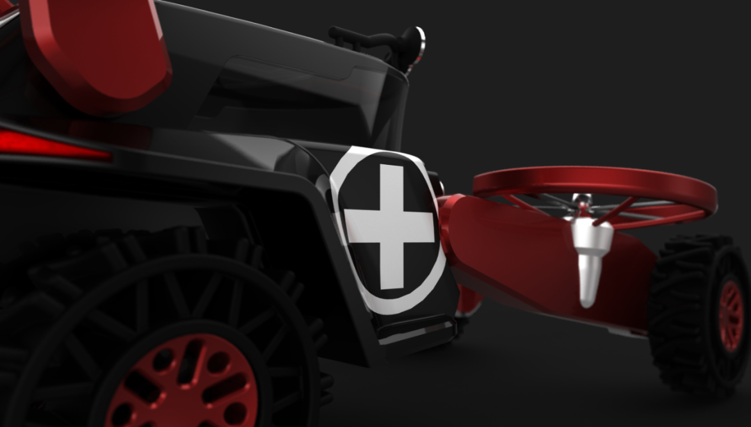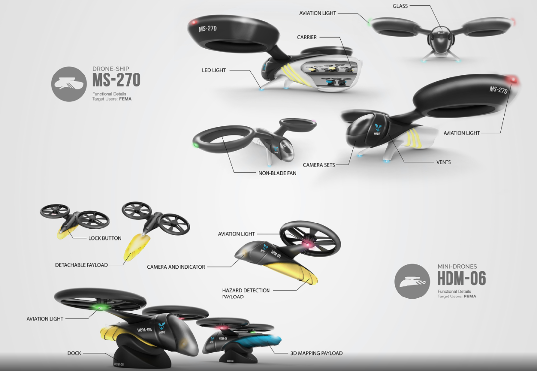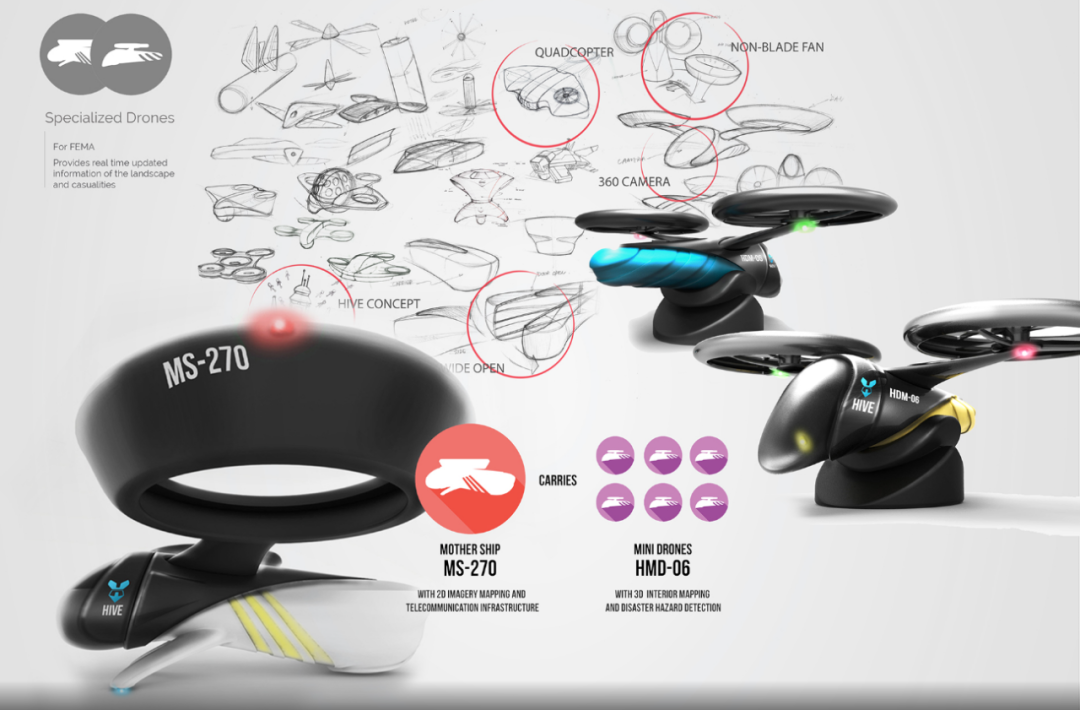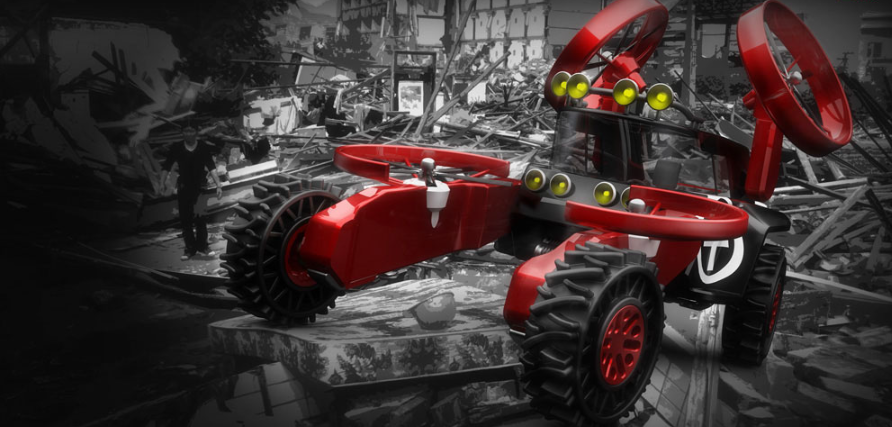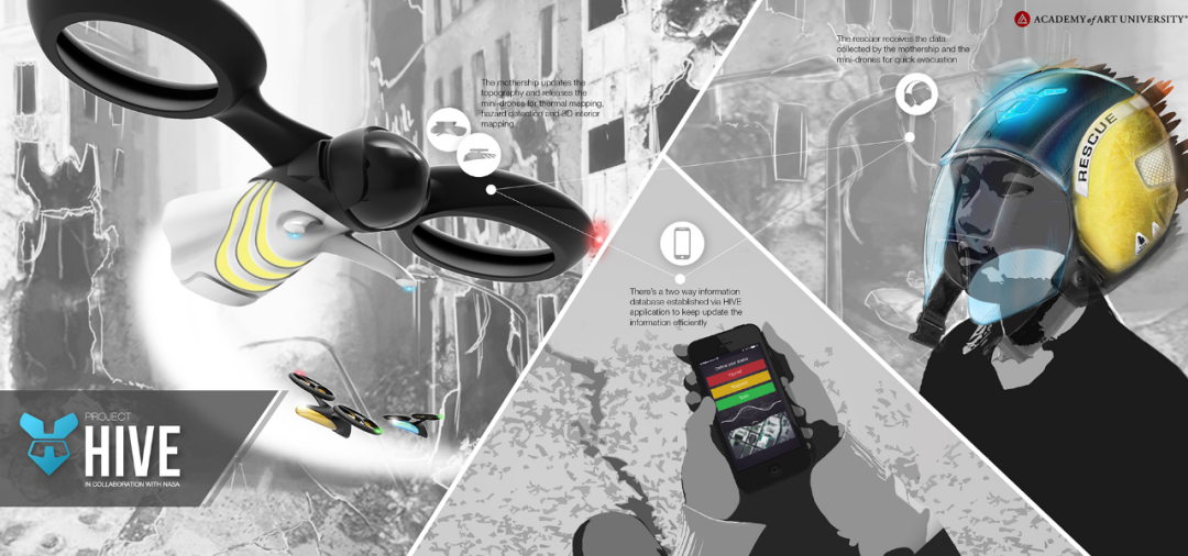 采用小型飞行器与头戴式头盔的交互式设计,能帮助地面上的救灾人员快速锁定被困人员的地理位置,从而尽可能快速施展救援。