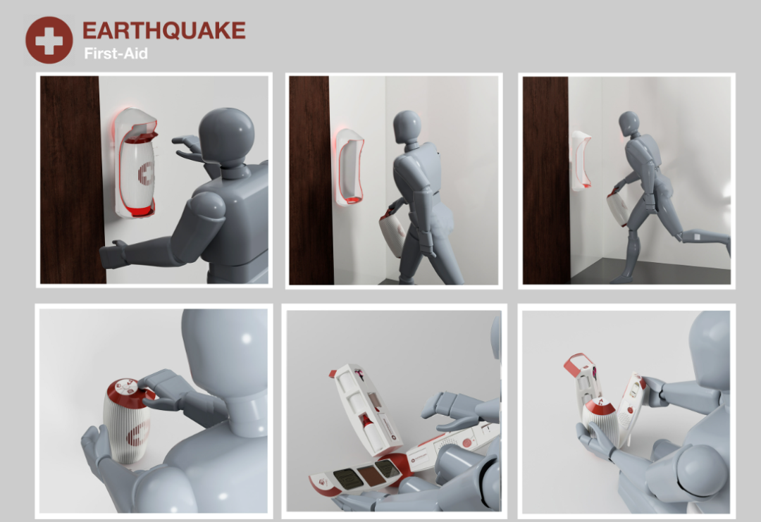 悬挂在公共场所的紧急救助箱,内含多模块救助药品,为受伤/被困人员提供生命的补充剂。