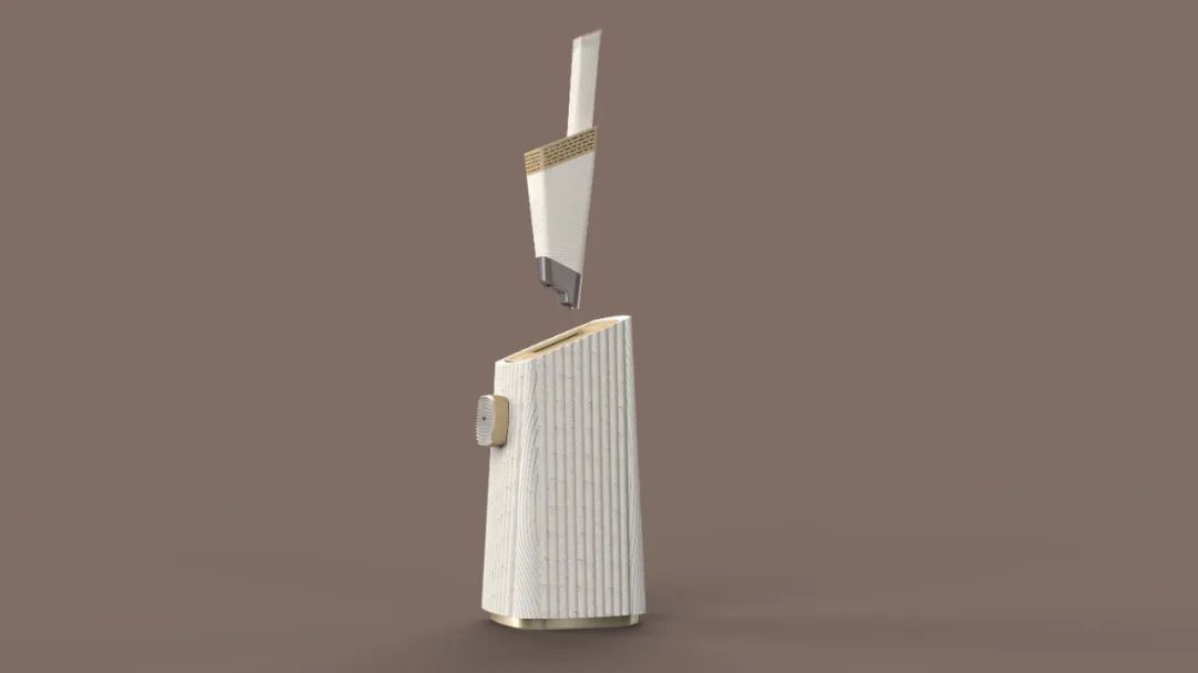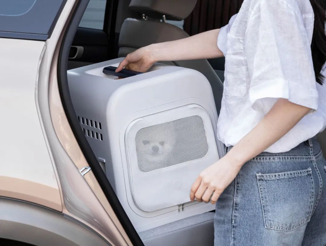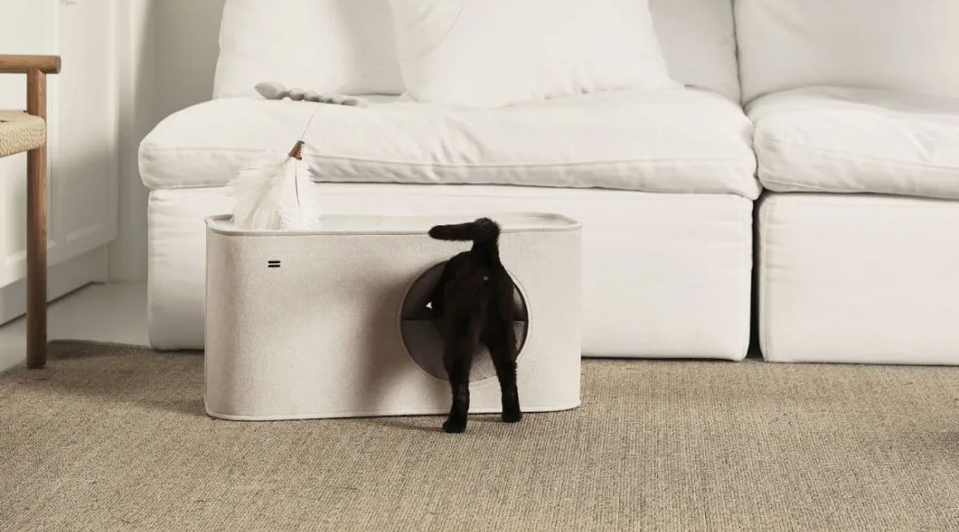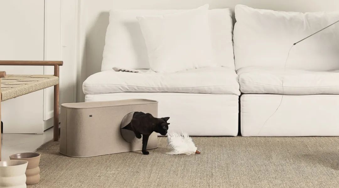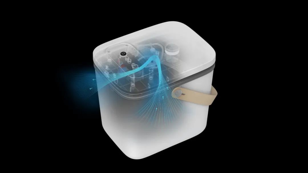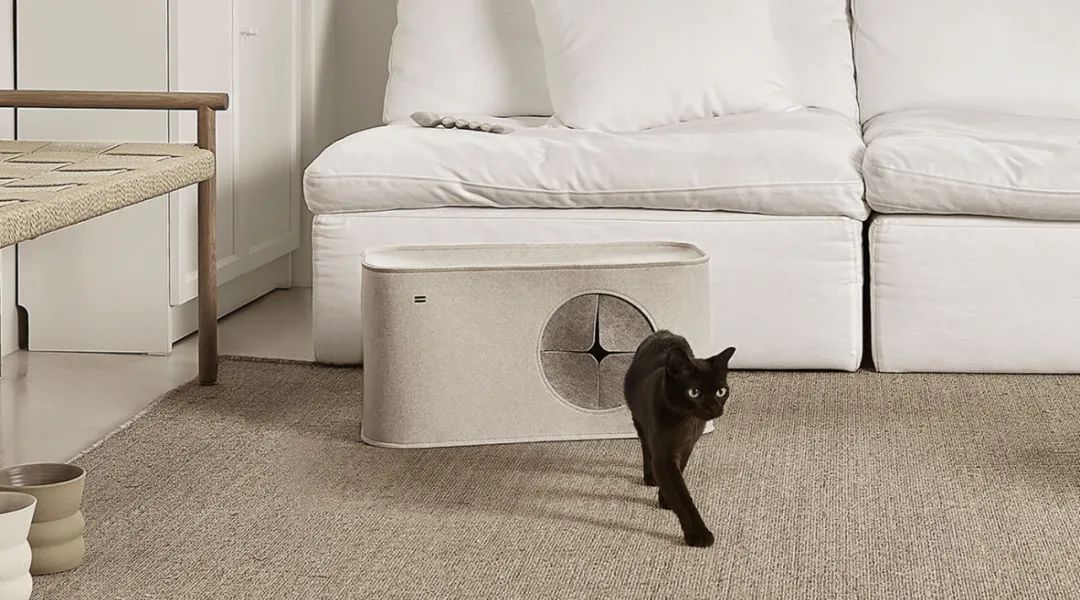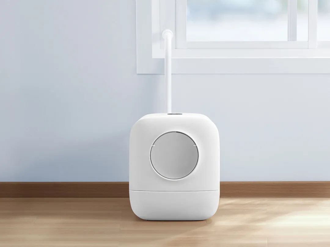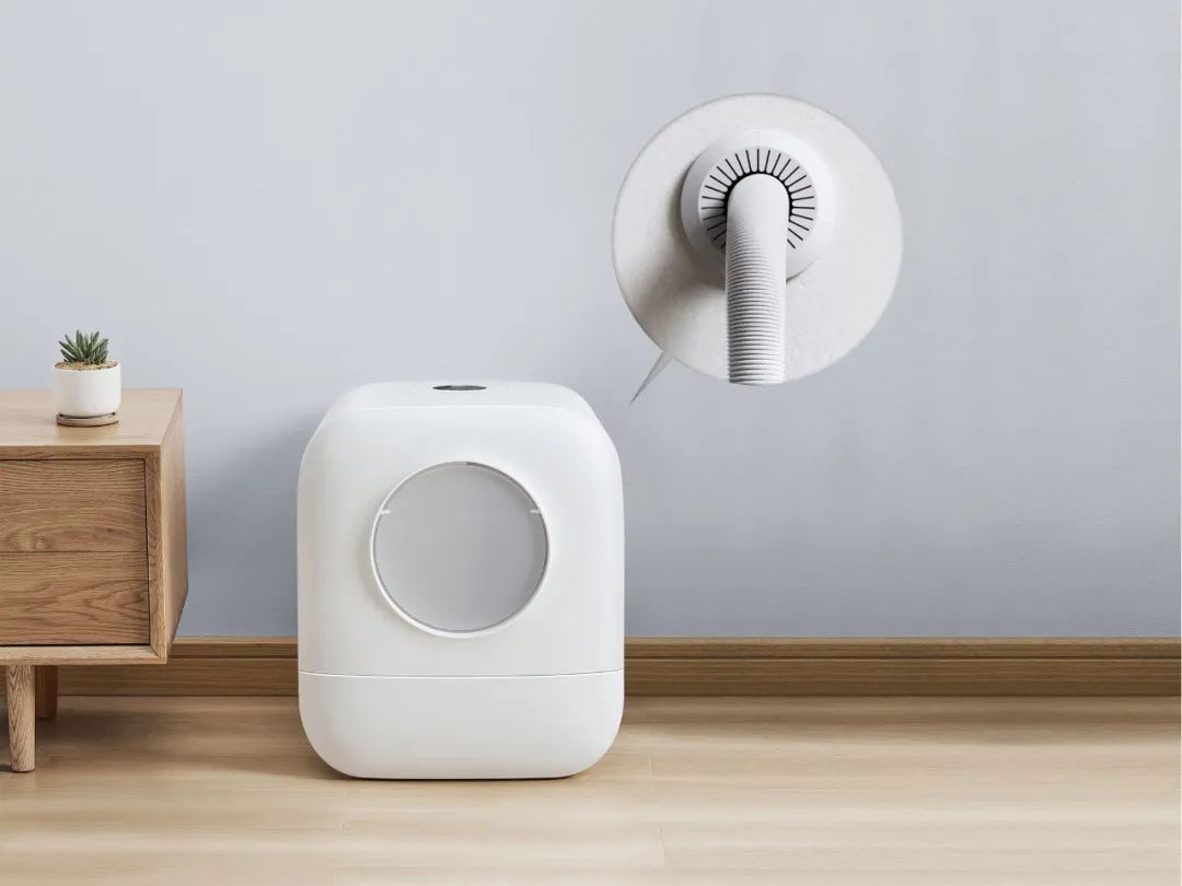 这是一款除臭猫砂盒。产品设计考虑了主人和猫的舒适度。顶部的“新风模块”可以去除猫砂盒内排泄物引起的异味,并具有抑菌作用,营造舒适健康的环境。此外,“新风模块”还可以与猫砂盆分开使用,为更多的宠物群体带来新鲜空气。