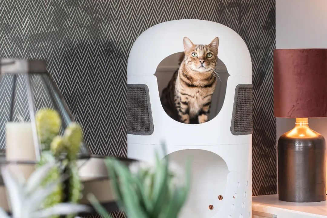 Caturday 是一款专为猫设计的智能护肤套装。具有除菌除异味的空气净化功能,以及吸尘清洁猫砂的功能。你可以通过应用程序查看家中的空气质量,并进行远程控制,保持环境清洁,减少猫生病的风险。Caturday 配有梳子,带有面部识别镜头和微距镜头,可以让猫根据自己的习惯轻轻梳理头发,并检查家中每只猫的皮肤状况。数据还会返回到移动应用程序,与兽医进行在线咨询或预约以管理猫的健康。
