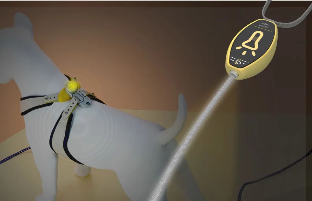 AMI 是一个智能狗背带和项圈组。它可以通过传感器采集日常健康数据(心跳、温度等),手持设备还可以显示狗在行走过程中的状态,让主人每次都能捕捉到异常。通过快速扣上,项圈可以迅速成为狗的安全带。项圈和狗背带内侧有一个特殊的垫子,可以增加宠物的舒适度。绳子上有抓握区域,主人可以自由调节抓握区域,当宠物突然冲过来时,可以立即抓握,减少意外的发生。