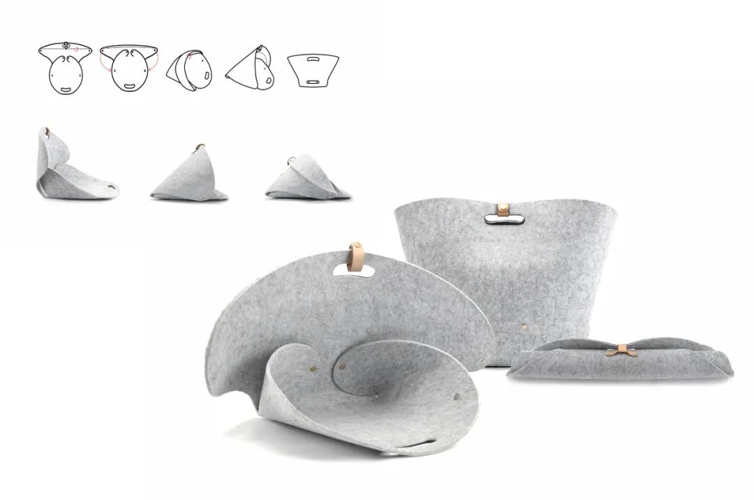 PICA 是一款多功能宠物窝,专为不同情况而设计。灵感来自折纸。只需一个毛毡和几个纽扣,就可以轻松转换成不同形式,功能多样。半封闭设计可保护您的宠物,而不会阻止它与您互动。此外,它还可以变成一个大型旅行包,用于存放您的宠物及其用品。PICA 易于卷起,占用空间小,清洁工作量小。