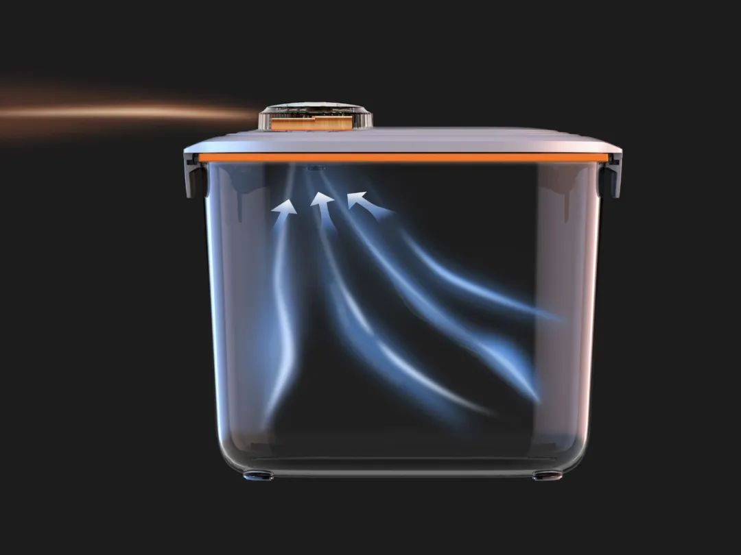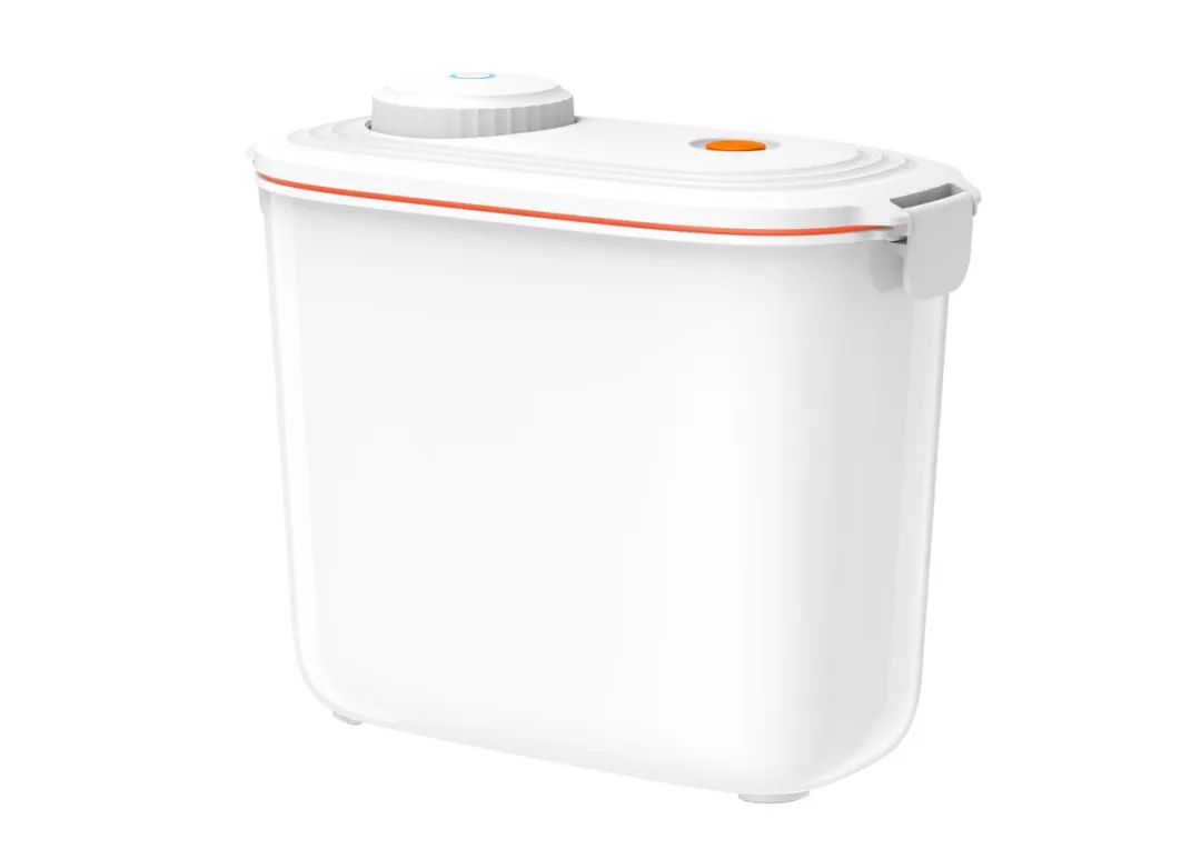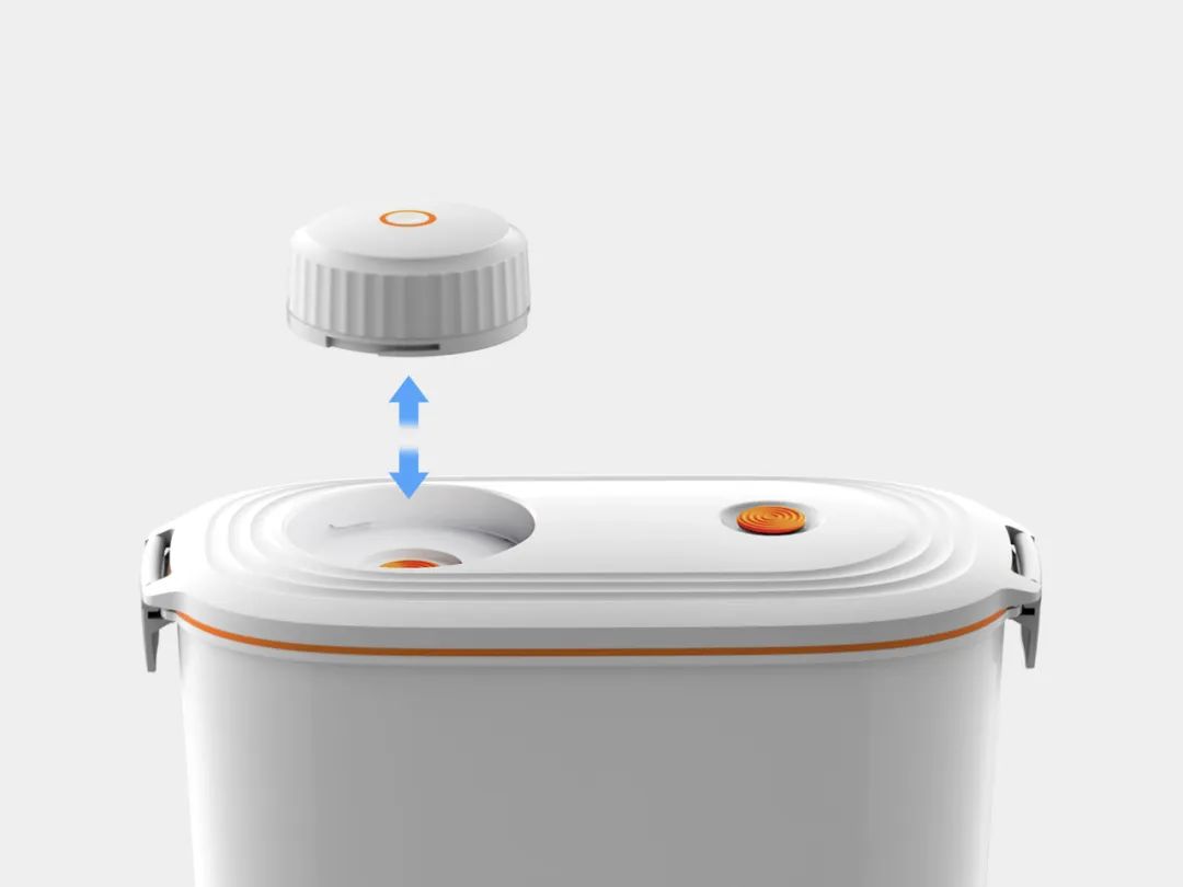 本食品储存容器采用真空装置,使宠物食品可以长期防潮保鲜。它提高了宠物的饮食质量。其突出优点如下:1、智能真空保鲜:其外形使食品储存容器在抽真空时不变形。它可以保持恒定的负压真空。2、模块化设计:真空模块不占用内部食物储存空间,可拆卸独立充电。3、操作方便:一键即可抽真空。指示灯,反映设备的实时状态。