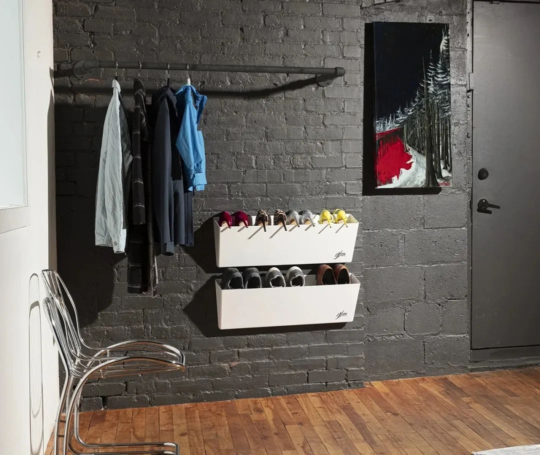 Avril是一种金属板机架,可安装在任何墙壁上,架子突出墙壁仅5.1英寸,每个架子至少可容纳3双鞋。如果架子随着时间的推移变脏,只需将其取下擦拭干净或在园艺软管下冲洗干净!