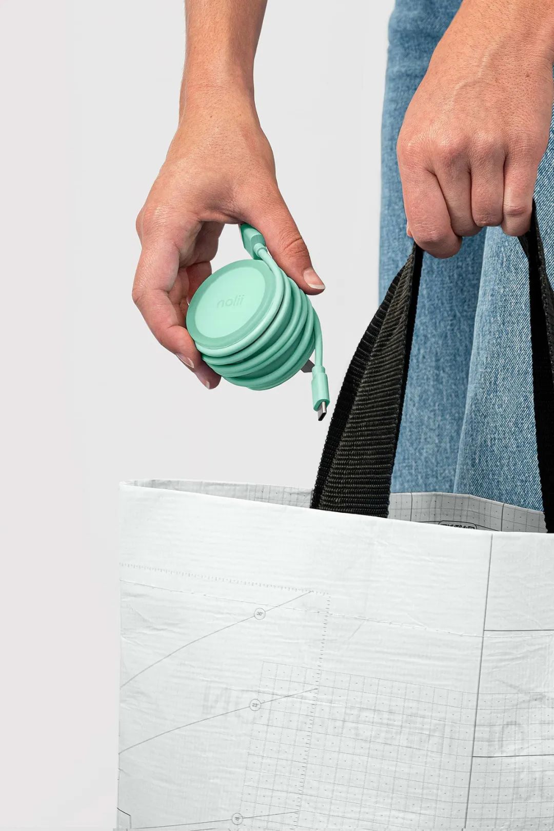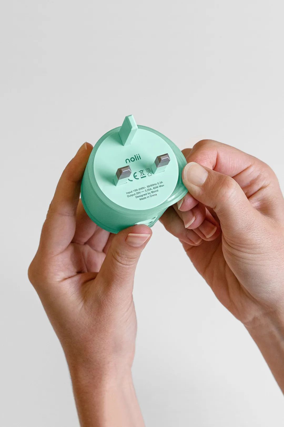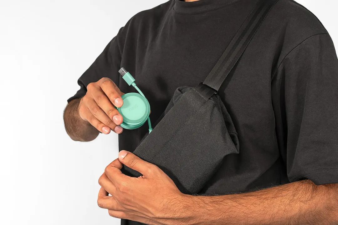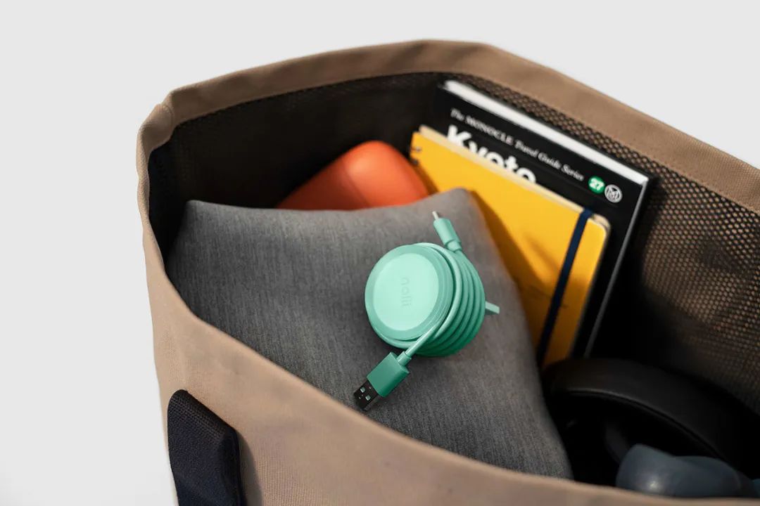 NOLII在设计产品时,将充电线围绕在充电器上,然后将其锁定到位。这种“锁”是通过柔软的硅胶套管实现的,带有凹槽。柔软的触摸套和明亮的颜色,使该产品大胆而有趣。
